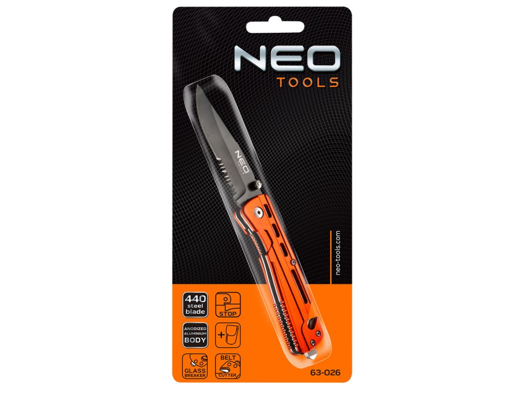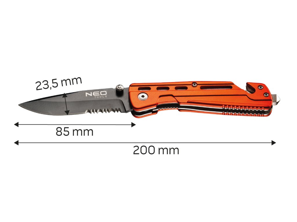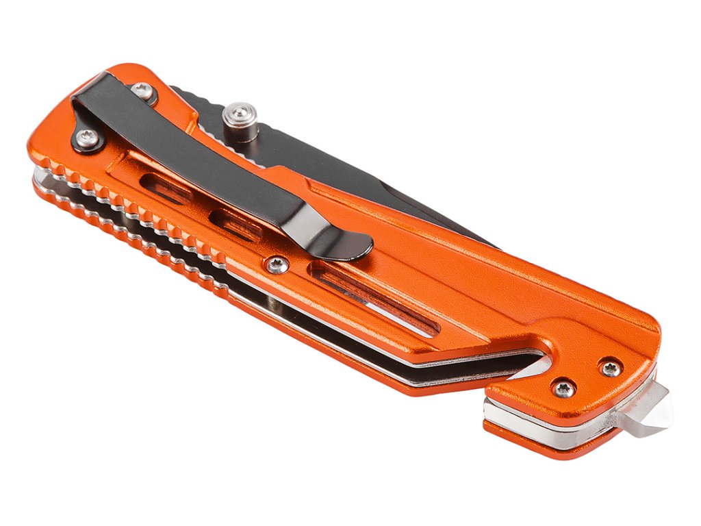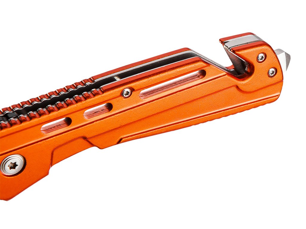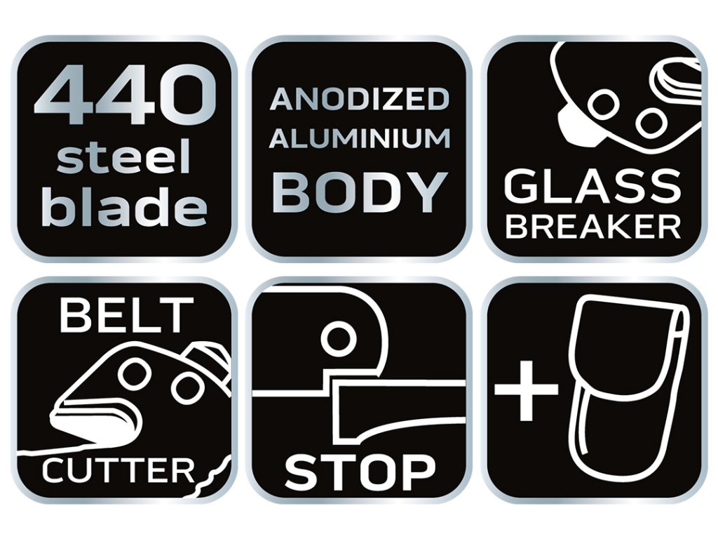 Skladací nôž má čepeľ vyrobenú z ocele 440 s dĺžkou 8,5 cm. Hliníkové telo zvyšuje trvanlivosť výrobku a odolnosť voči korózii. Špeciálna čepeľ umožňuje prerezať pás, čo výrazne uľahčuje uvoľnenie počas nebezpečenstva v aute. Odolný nylonový kryt na jednoduché skladovanie a prepravu.