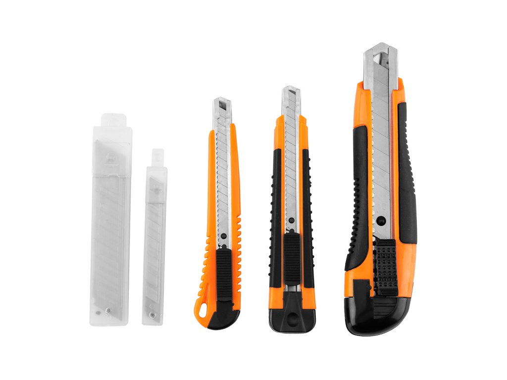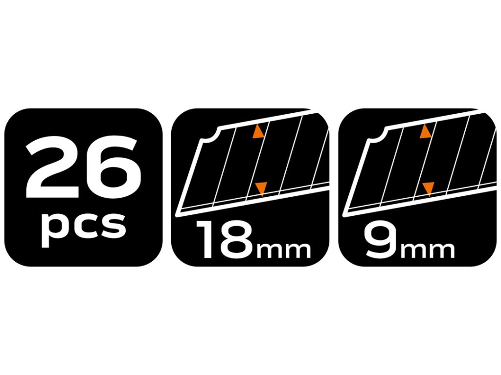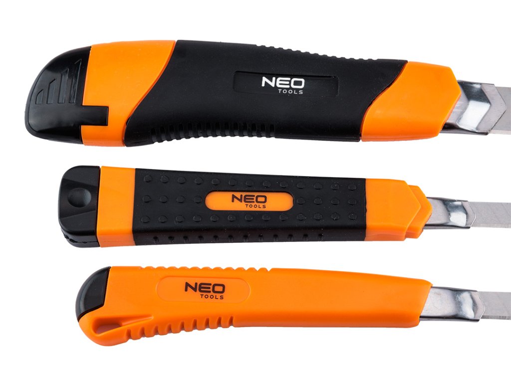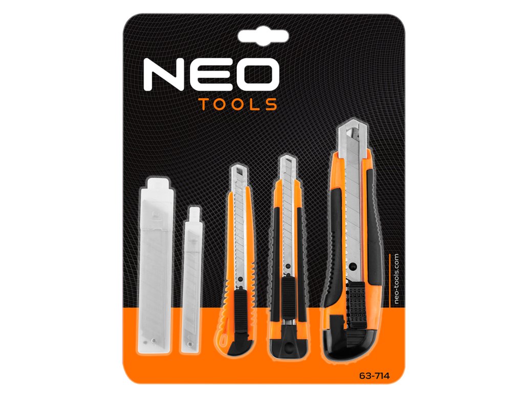 Odlamovacie nože + čepele, sada 26 kusov 63-714 od NEO TOOLS je sada 26 kusov, ktorá obsahuje tri nože a mnoho typov odlamovacích čepelí rôznych dĺžok. Náradie je vybavené kovovými vodidlami čepelí, takže sa bude dobre hodiť na všetky druhy rezania a prerezávania. Týchto 5 výrobkov v jednom poskytuje adekvátnu prípravu na také ručné práce, ako je modelárstvo, hobby kurzy, opravárenské práce alebo projekty 3D tlače. Súprava obsahuje 1 nôž s 18 mm odlamovacou čepeľou, 2 nože s 9 mm odlamovacou čepeľou, 10 kusov 18 mm čepelí a 10 kusov 9 mm čepelí. Nože a čepele značky NEO TOOLS sú osvedčenými riešeniami na mnohé úlohy.