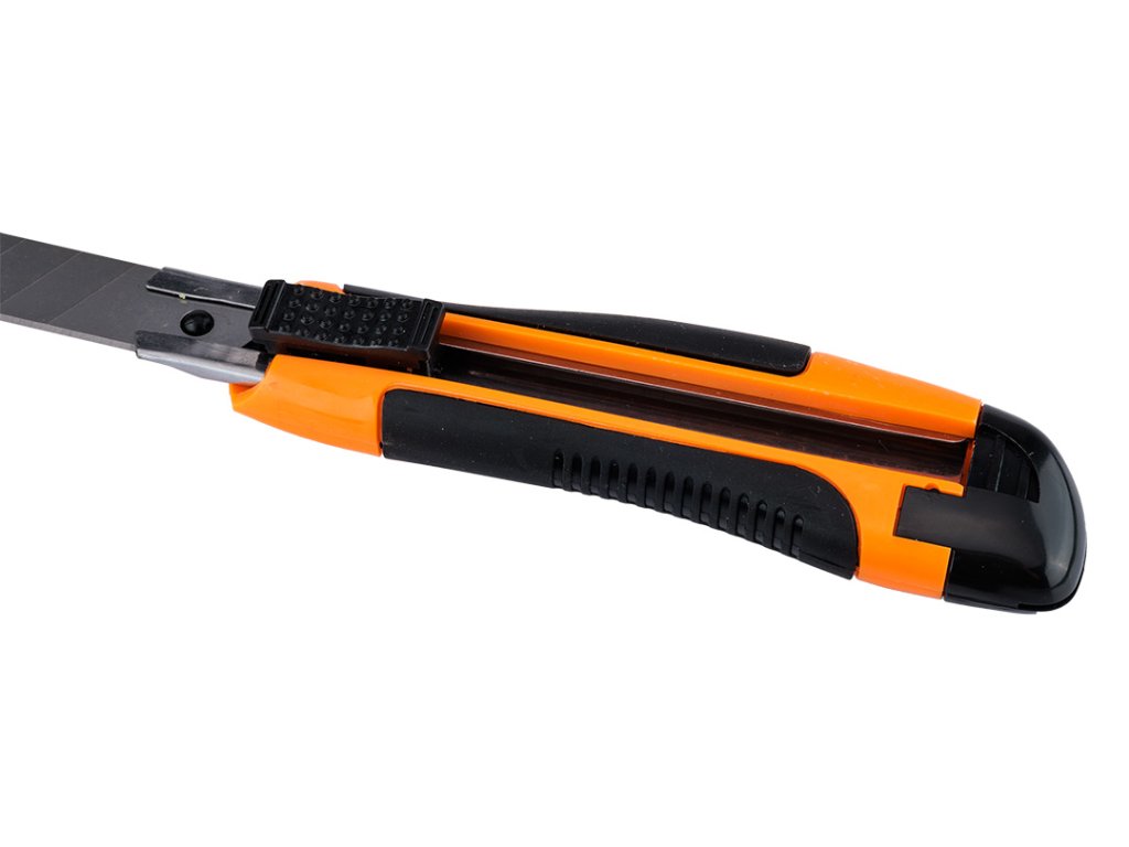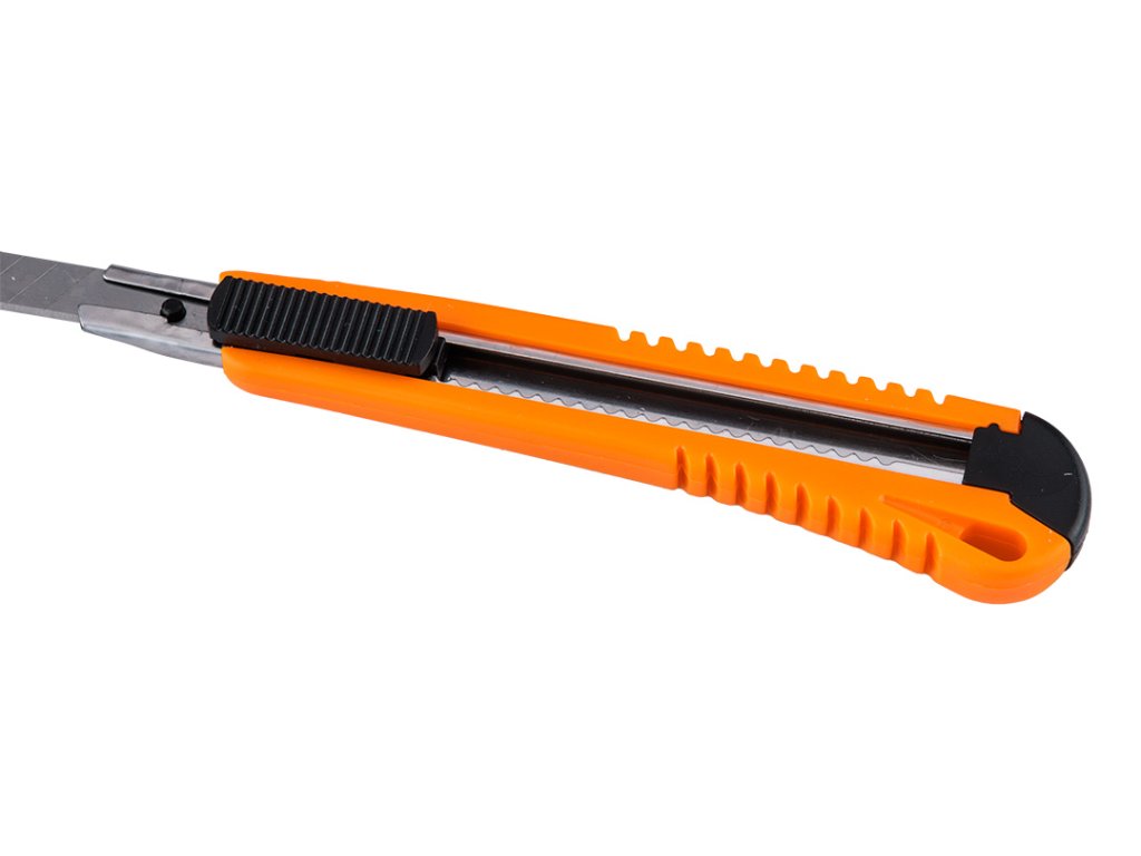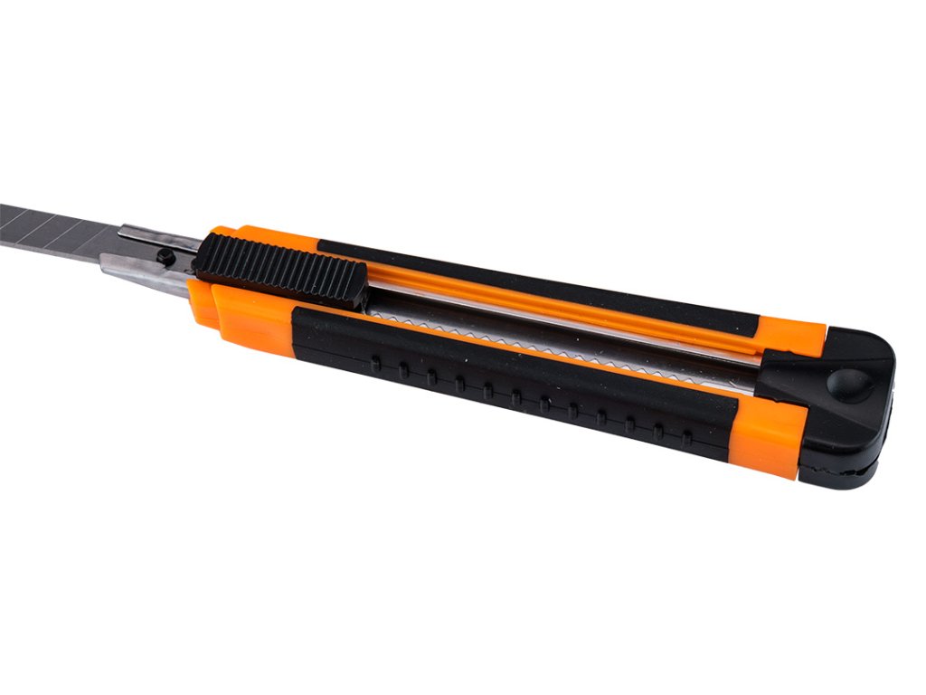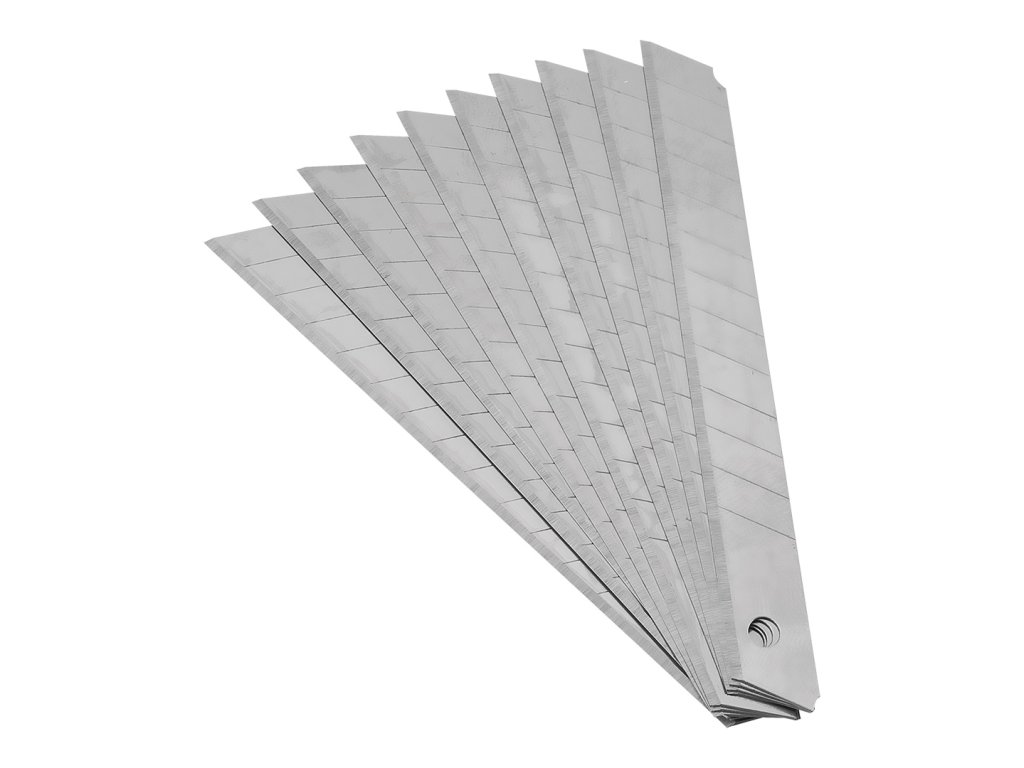 Nože s odlamovacou čepeľou - jeden s 18 mm čepeľou a dva s 9 mm odlamovacou čepeľou s kovovými vodidlami + 18 mm čepele po 10 ks a 9 mm čepele po 10 ks, sada 26 kusov.