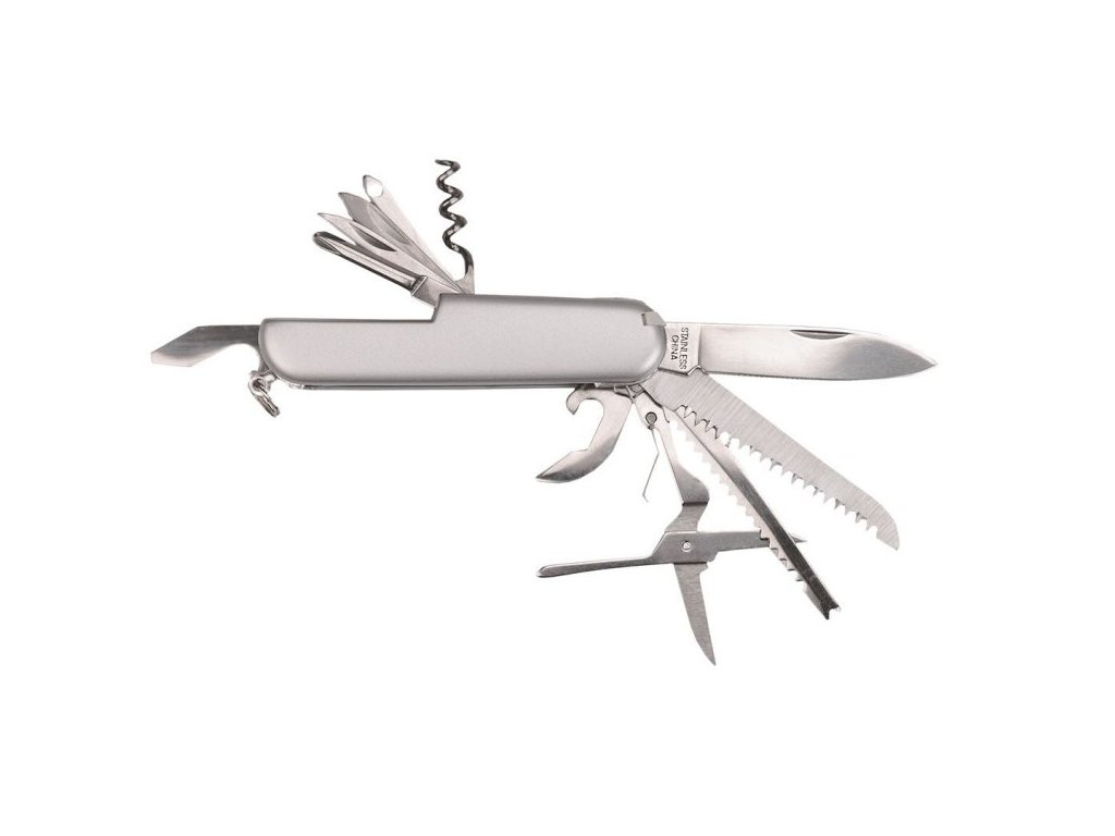 Multifunkčný vreckový nôž s 11 funkciami. Nožík je vyrobený z nerezovej ocele.