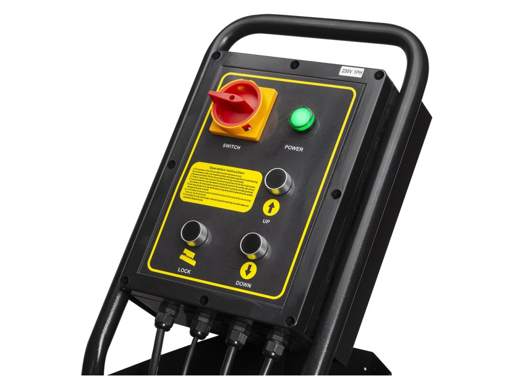 - Koncový spínač hornej polohy – zdvihák sa automaticky zastaví po dosiahnutí maximálnej výšky.