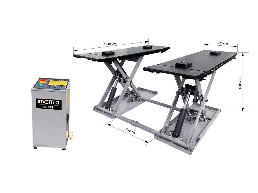 Profesionálny elektrohydraulický nožnicový zdvihák INVENTO SL S35 je určený na zdvíhanie osobných automobilov a ľahkých úžitkových vozidiel s hmotnosťou do 3,5 tony. Vďaka robustnej konštrukcii a presnému hydraulickému systému poskytuje bezpečný a stabilný zdvih v autoservisoch, pneuservisoch alebo dielňach.