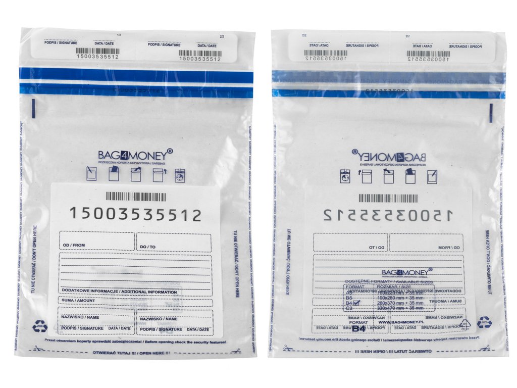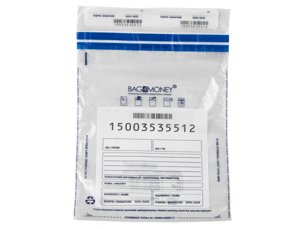 Bezpečnostná depozitná obálka slúži na uskladnenie a prepravu cenných vecí. Samolepiaci prúžok zabraňuje otvoreniu obálky bez jej poškodenia. Bezpečné pečate - odolné proti roztrhnutiu, postupné číslovanie obálok a kontrolné kupóny - zaručujú bezpečnosť výrobkov, ktoré sa do nich zasielajú a skladujú.