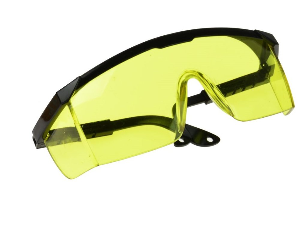 Ochranné okuliare sú vyrobené z kvalitného polykarbonátu. Sú odolné voči prachu, rôznym úlomkom a proti vode. Sú určené na ochranu zraku pred zasiahnutím tuhými látkami, ktoré vznikajú pri spracovaní materiálov ako drevo, kovy a plasty. Sú vybavené aj ochranou proti naštiepeniu. Okuliare sú zaradené do optickej triedy 1 a majú žltú šošovku. Rám je vyrobený z plastu s nastaviteľnou dĺžkou.