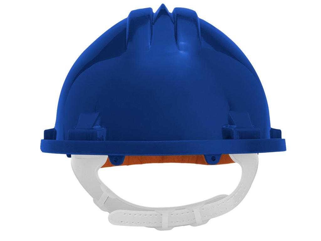 Certifikovaná ochranná prilba, modrá, nastaviteľný obvod 54-61 cm, materiál: HDPE, trieda 0, 6-bodový popruh, hmotnosť: 322 g, chráni pred nárazmi predmetov, ako sú kamene, dlaždice, tehly a iné podobné predmety, chráni pred elektrickými výbojmi od 1000 V AC a 1500 V DC (nízkonapäťové inštalácie), súčasťou je potný pásik, certifikát CE