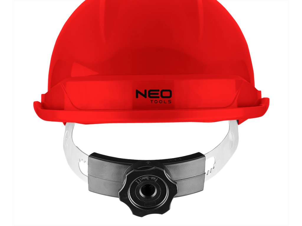 Priemyselná prilba s remienkom pod bradou, červená 97-224 od spoločnosti NEO znamená zaručenú ochranu hlavy a pohodlie. Prilba je určená pre pracovníkov s rizikom úrazu. Je užitočný pri práci na lešení, v sklade a pri výkopových prácach. Má nastaviteľný obvod 52-64 cm a je vyrobený z materiálu ABS. Je vybavená 6-bodovým bezpečnostným pásom a 4-bodovým podbradným pásom a chráni pred nárazom predmetov, ako sú kamene, dlaždice, tehly alebo iné predmety, ktoré by mohli predstavovať potenciálne nebezpečenstvo. Prilbu možno používať v teplotnom rozsahu -30 °C/+50 °C. Automatické nastavenie obvodu pomocou gombíka zjednodušuje obliekanie a nasadzovanie výrobku. Ventilačné otvory a potný pásik, ktoré sú súčasťou súpravy, prispievajú k pohodliu prilby aj pri mnohohodinovom plnení úloh. Má certifikát CE.