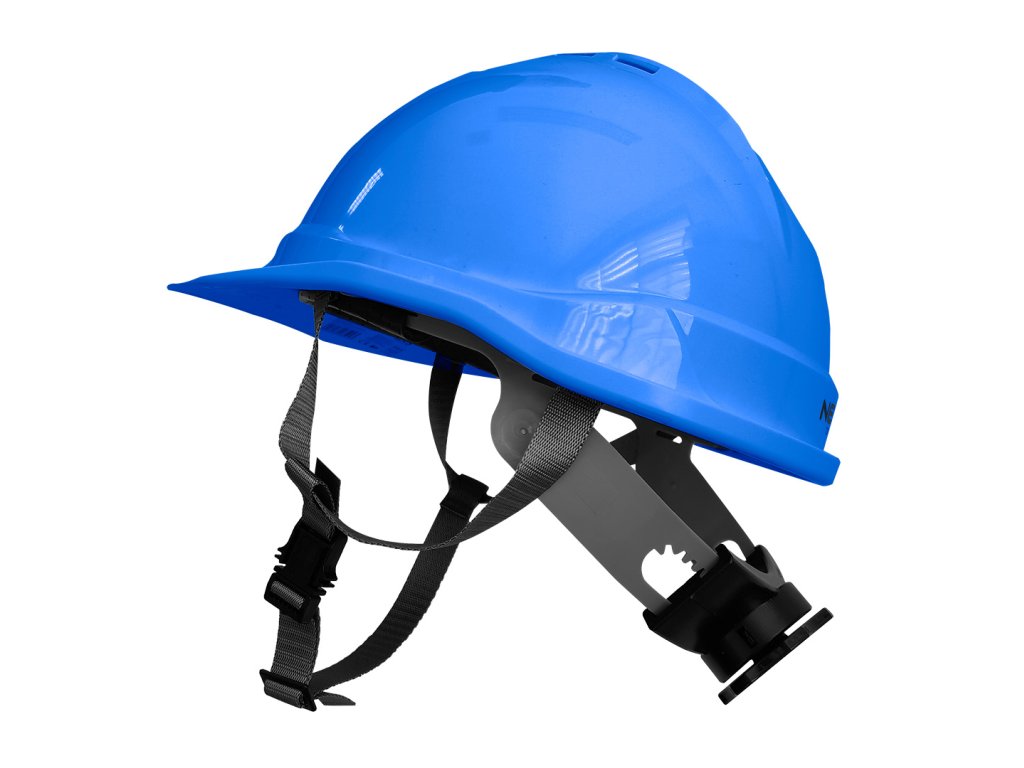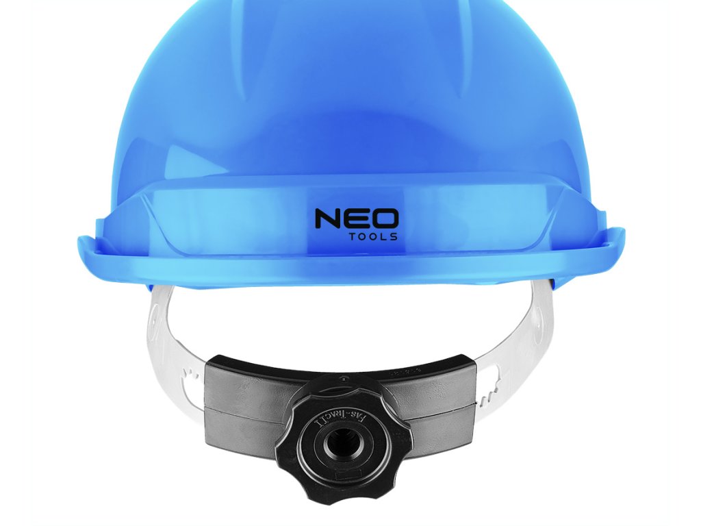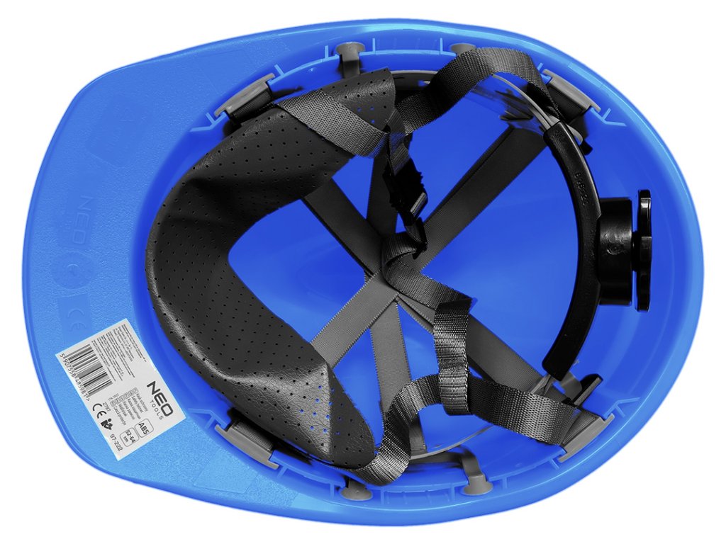 Priemyselná prilba s remienkom pod bradou, modrá 97-222 od spoločnosti NEO znamená zaručenú ochranu hlavy a pohodlie. Prilba je určená pre pracovníkov s rizikom úrazu. Je užitočný pri práci na lešení, v sklade a pri výkopových prácach. Má nastaviteľný obvod 52-64 cm a je vyrobený z materiálu ABS. Je vybavená 6-bodovým bezpečnostným pásom a 4-bodovým podbradným pásom a chráni pred nárazom predmetov, ako sú kamene, dlaždice, tehly alebo iné predmety, ktoré by mohli predstavovať potenciálne nebezpečenstvo. Prilbu možno používať v teplotnom rozsahu -30 °C/+50 °C. Automatické nastavenie obvodu pomocou gombíka zjednodušuje obliekanie a nasadzovanie výrobku. Ventilačné otvory a potný pásik, ktoré sú súčasťou súpravy, prispievajú k pohodliu prilby aj pri mnohohodinovom plnení úloh. Má certifikát CE.