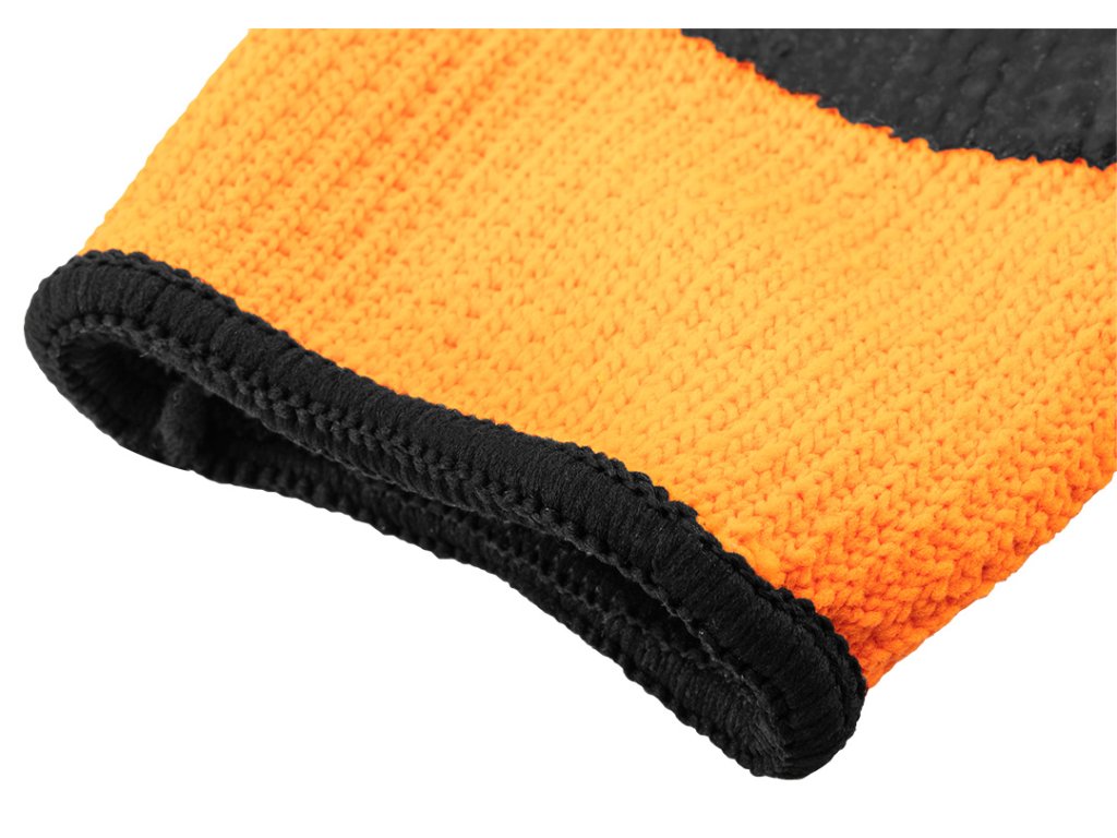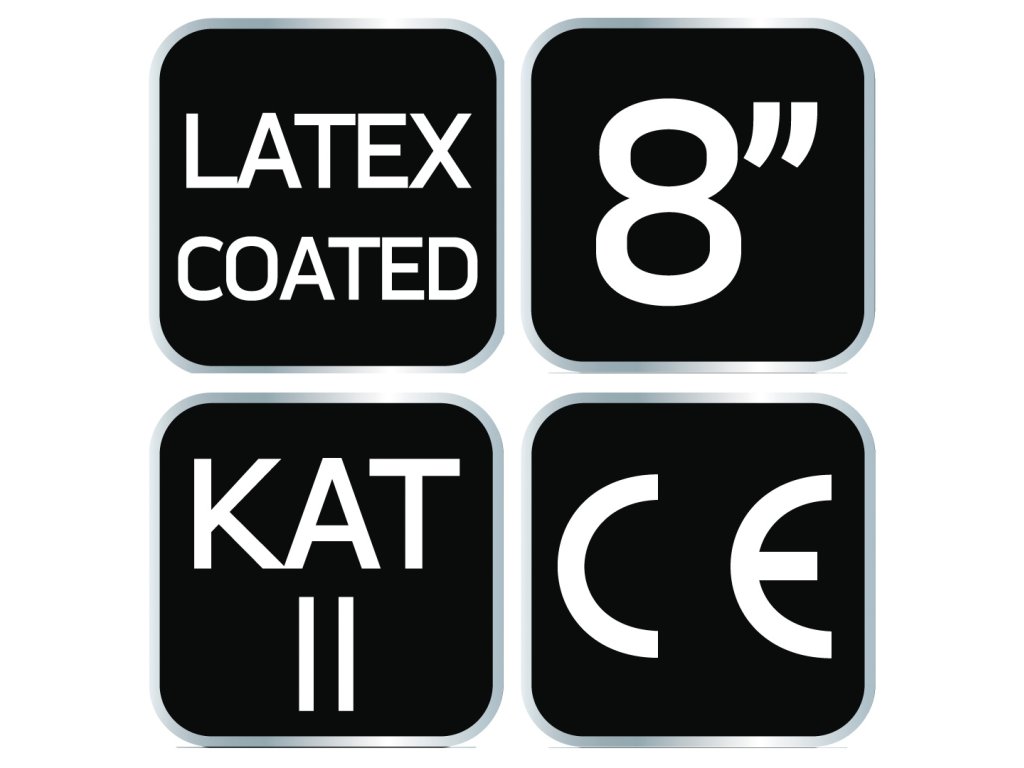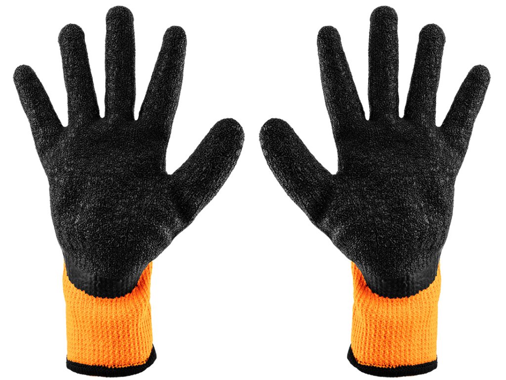 Zateplené pracovné rukavice NEO veľkosti 8, polyester potiahnutý latexom, 2242X 97-612-8, sú vyrobené z polyesteru potiahnutého latexom. Majú vysokú odolnosť proti oderu (0 až 4) 2, odolnosť proti porezaniu ostrými predmetmi (0 až 5) 2, odolnosť proti roztrhnutiu (0 až 4) 4 a odolnosť proti prepichnutiu (0 až 4) 2. Vyznačujú sa aj odolnosťou proti prerezaniu podľa normy EN ISO 13997 X. Rukavice dobre padnú do ruky. Možno ich použiť na všetky druhy prepravy, manipulácie, skladovania, montážnych prác, výroby malých dielov, pre domácich majstrov, v automobilovom priemysle a v záhradníctve. Chránia ruky pred chladom, špinou, škrabancami, odtlačkami a škodlivými pracovnými podmienkami. Správna konštrukcia - zabraňuje vykĺznutiu náradia z rúk. Označenie CE pre zhodu s normou EN 388, 22242X je zárukou bezpečnosti, ktorá dokazuje, že výrobok značky NEO spĺňa všetky požiadavky EÚ.