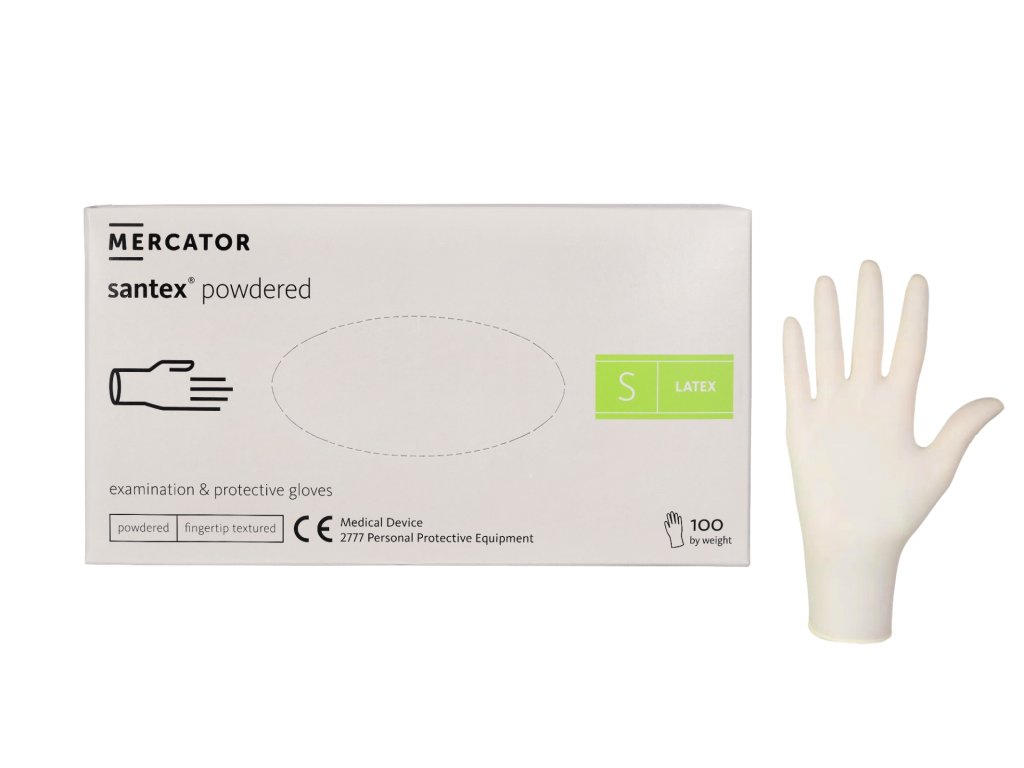MERCATOR Santex pudrové rukavice, latexové, krémové, veľkosť S, 100ks/bal.