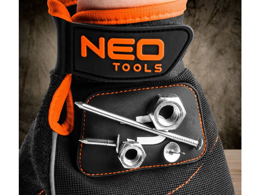 Pracovné rukavice s magnetom, veľkosť 10" NEO (ref. GD013), Vám umožnia mať pri práci na hornej časti ruky pripevnené klince, skrutky, matice, vrtáky, skrutkovače a všetky ostatné kovové diely. Už žiadne hrabanie sa vo vreckách po skrutky alebo držanie klincov medzi perami. Teraz môžete svoju vŕtačku, kladivo alebo iné náradie používať oboma rukami. Tri odkryté končeky prstov umožňujú presnú prácu.