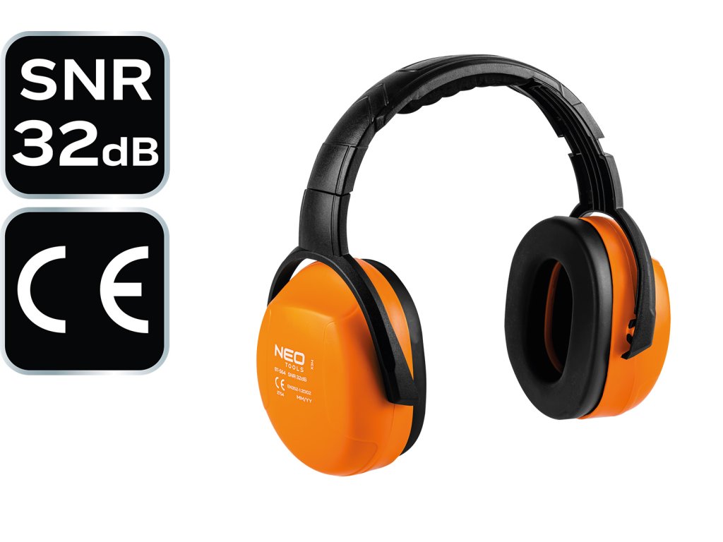 Chrániče sluchu NEO, SNR 32 dB, CE 97-564 od spoločnosti NEO sú certifikované chrániče sluchu spĺňajúce normu EN352-1:2002, určené na úroveň útlmu okolitého hluku 32 dB. Majú mäkké, široké vankúšiky, ktoré znižujú tlak okolo uší. Nastaviteľná čelenka poskytuje lepšie prispôsobenie a pohodlie pri nosení, zatiaľ čo zväčšený priestor vnútri náušníkov znižuje hromadenie vlhkosti a zabraňuje prehrievaniu. Ideálne na profesionálne aj hobby použitie.