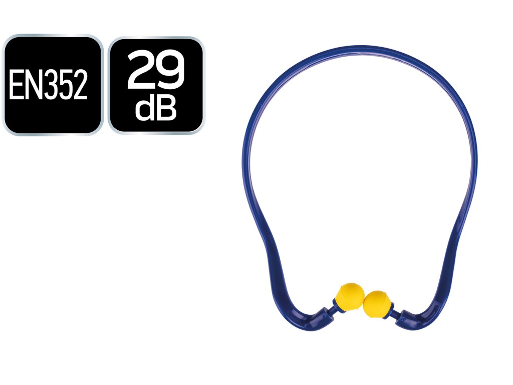 Ochranné zátky do uší na čelenke, SNR 29 dB, kategória ochrany III, zátky do uší z polyuretánovej peny, plastová čelenka umožňuje zavesenie na krk, konštrukcia zátok do uší umožňuje rýchle nasadenie a vybratie, certifikát CE