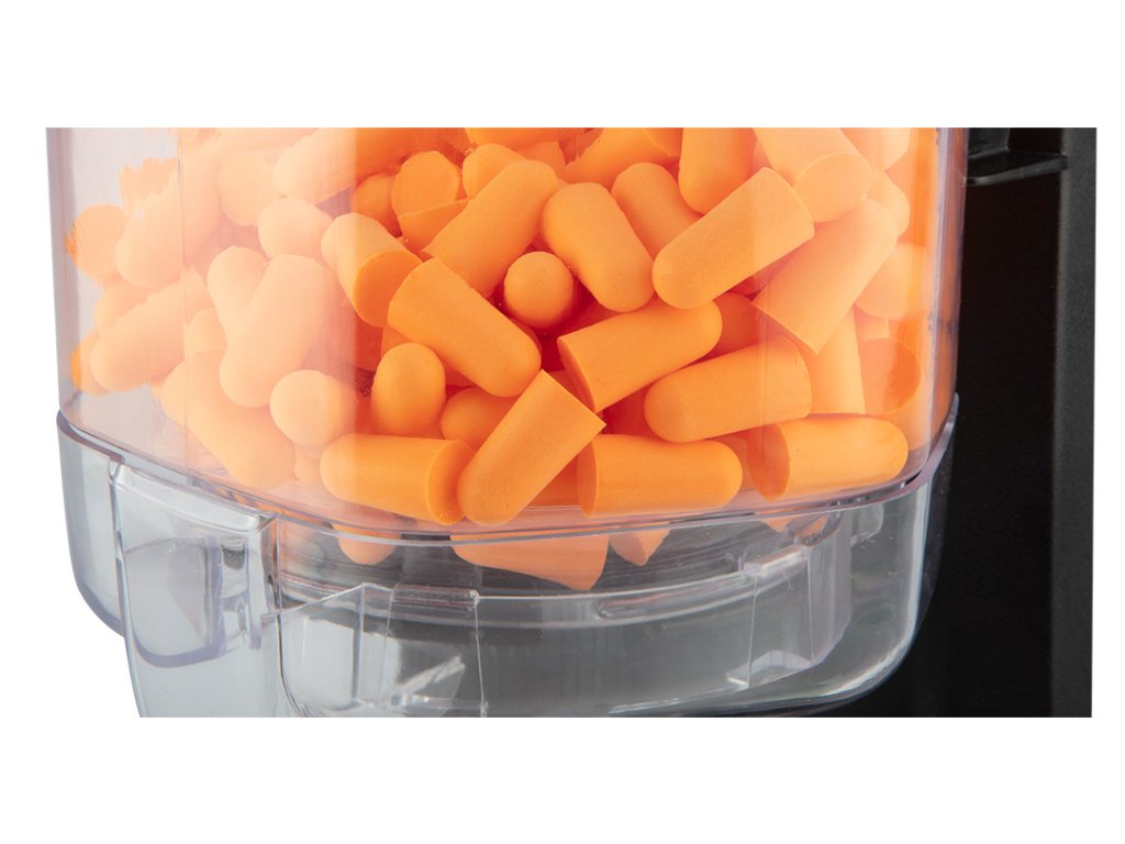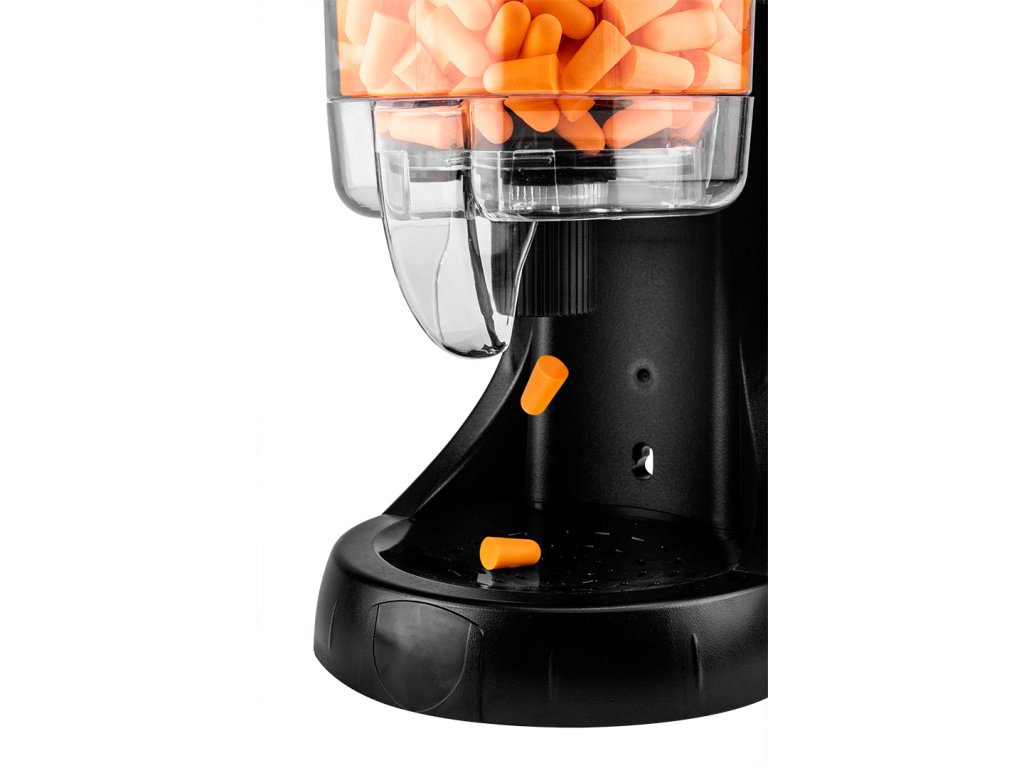 Dávkovač s protihlukovými vložkami 38 dB, kategória ochrany III, vložky z polyuretánovej peny, dávkovač dodávaný s 1000 vložkami, možno postaviť na rovnú plochu alebo pripevniť na stenu, možnosť opätovného naplnenia vložkami 97-552, klikací gombík na dávkovanie vložiek do ruky alebo do zásobníka. priehľadná nádoba, takže je viditeľný stav naplnenia vložiek, uzavretá nádoba zaisťuje hygienu a čistotu, certifikát CE