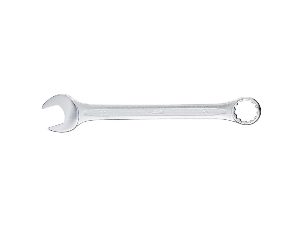 Kombinovaný kľúč NEO (ref. 09-730) s rozmermi 30 x 340 mm, vyrobený podľa normy DIN 3113. Vysokokvalitná chróm-vanádiová oceľ zaručuje dlhodobú životnosť kľúča. Kvalitu nástroja potvrdzuje certifikát TÜV a 25-ročná záruka výrobcu. Značka NEO spĺňa očakávania profesionálov.