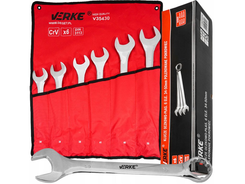 Sada kľúčov 6ks CrV obsahuje kombinované očkoploché/vidlicové kľúče. Veľkosť 34 - 50mm.