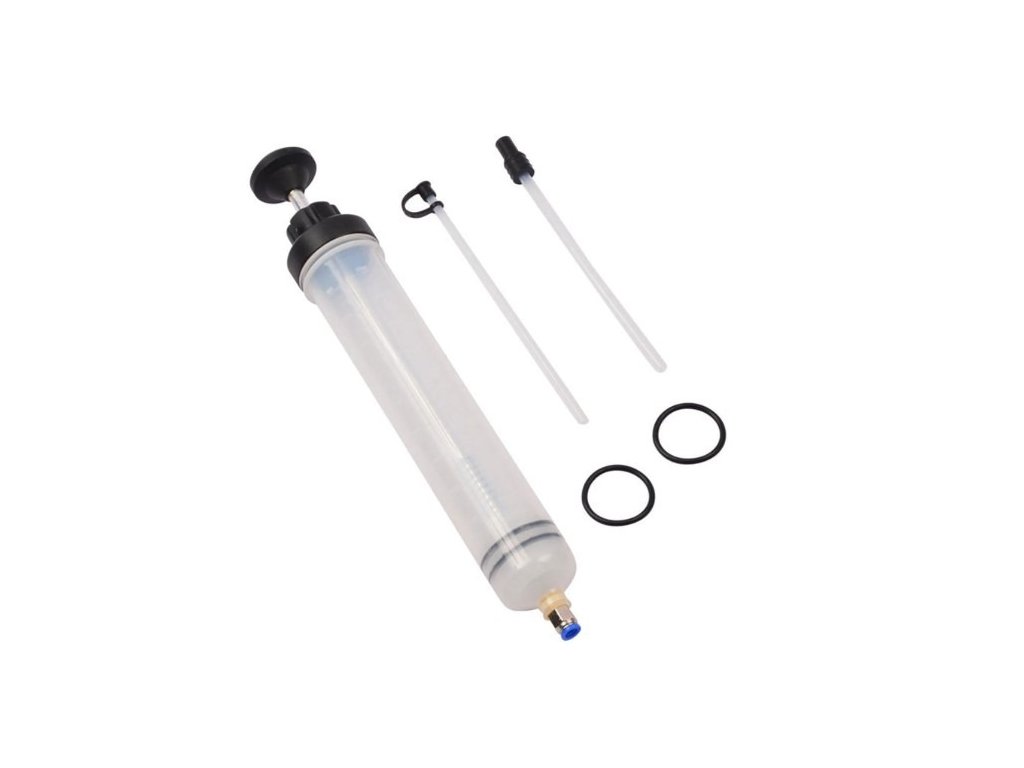 Model: INVTO07 Capacity: 500 ml Material: Plastic Size: 200 x 75 x 125 mm Set contents: 1x Manual fluid extractor (500 ml) 2x Seals 2x Flexible hoses (215 mm and 225 mm) 2x Hose caps 1x Hose connector