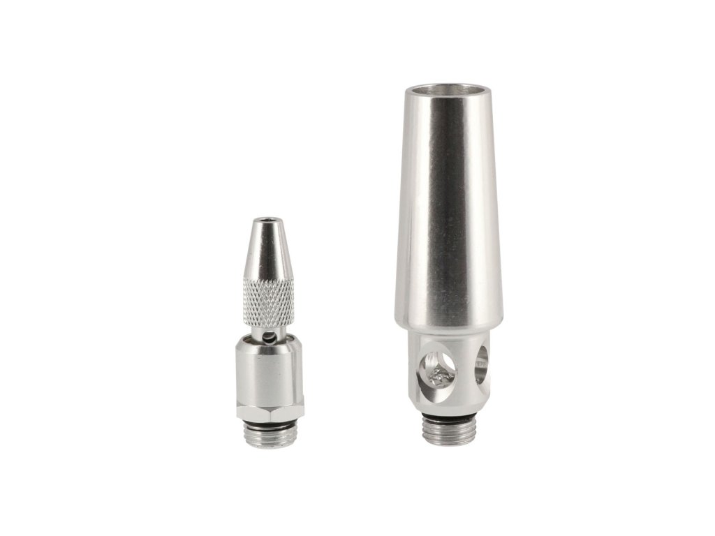 V súprave sú dva trysky, trysková a turbo tryska. S tryskovou tryskou máte možnosť regulovať prúd vzduchu. Vďaka turbo tryske sa prúd vzduchu stáva výrazne silnejším. Ak chcete vysať dielňu alebo bicykel s veľkým výkonom, toto je pre vás ideálne riešenie.
