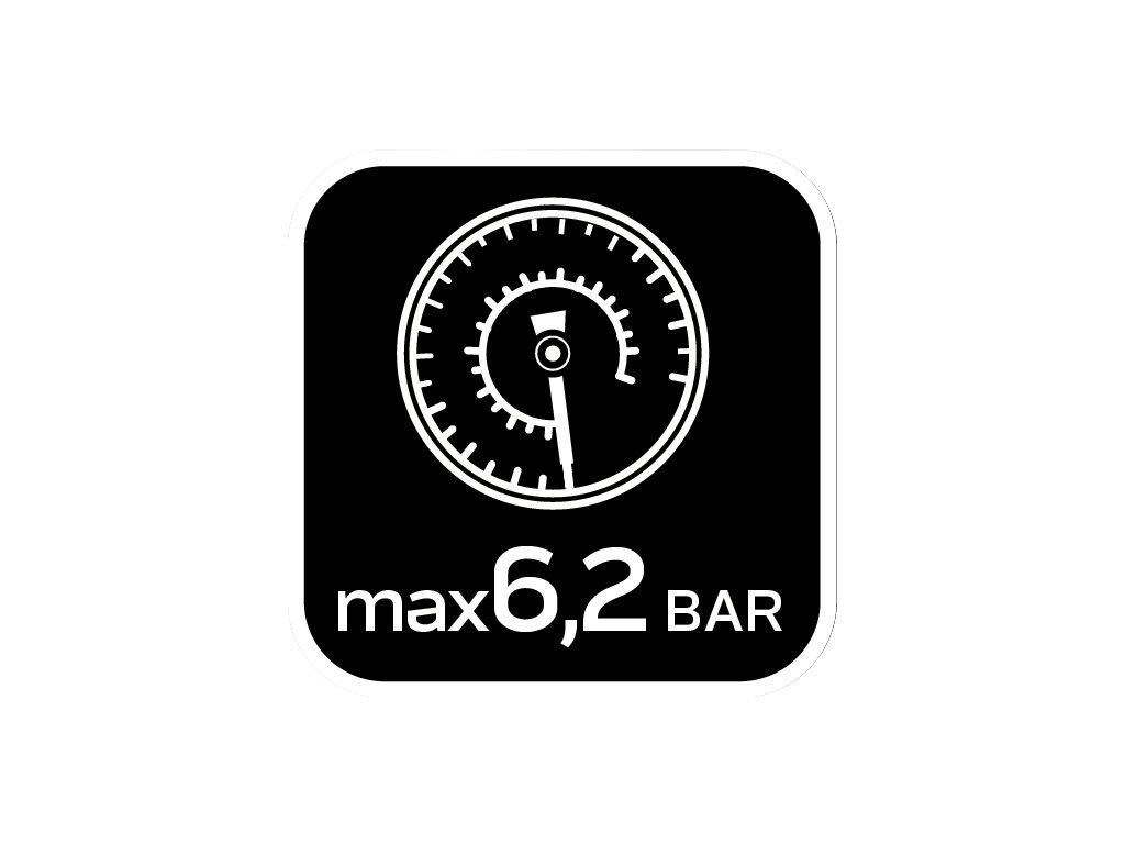 Venturiho fúkacia pištoľ, maximálny tlak 6,2 bar, 6-dielna súprava: pištoľ, Venturiho tryska, dva nadstavce (85 a 115 mm), pogumované koncovky, vsuvka, kľúč na výmenu koncoviek pištole, kovová konštrukcia pištole, pogumovaná rukoväť