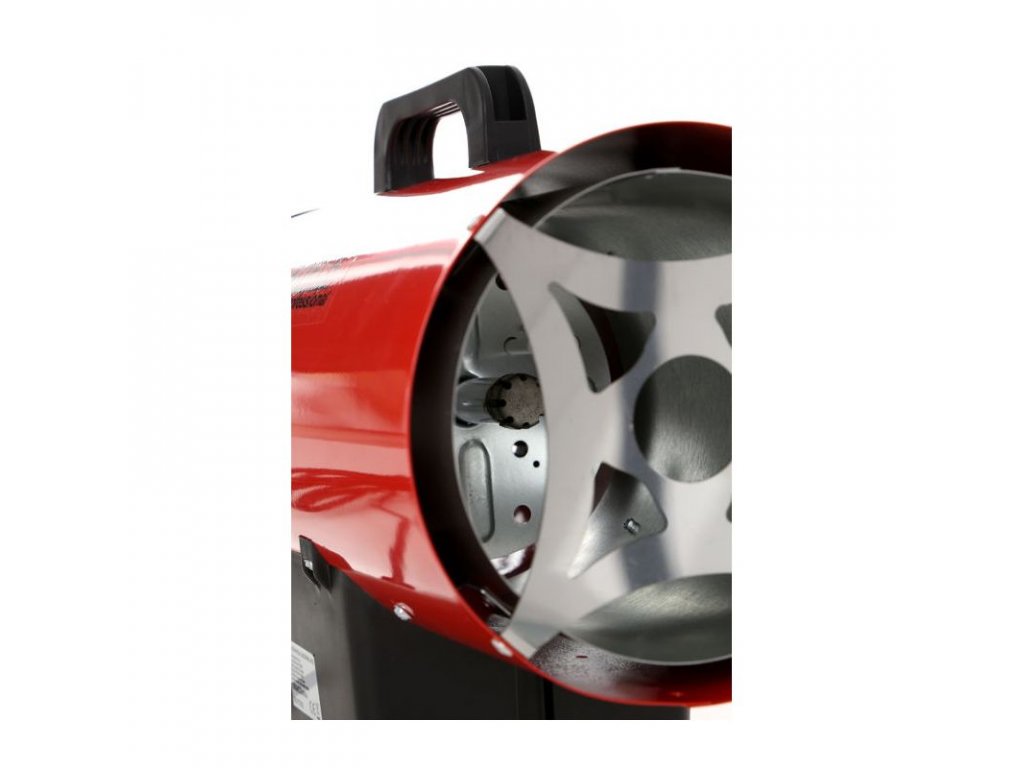 Ohrievač s výkonom 15 kW je určený pre propán-butánové fľaše a bomby. Vyniká vysokým efektom vyhrievania a maximálnymi úsporami plynu. Ohrievač využijete v stavebníctve, obytných a pracovných priestoroch, v skladoch a halách. Zariadenie je určené na používanie v takých priestoroch, v ktorých je zabezpečená dostatočná a správna ventilácia vzduchu. Úspora paliva je zabezpečená spaľovacou komorou navrhnutou pre tento typ ohrievačov. Zariadenie je bezpečné a ľahké na použitie. Rovnako ľahko ho budete prenášať na rôzne miesta, ktorý budete potrebovať vykúriť – o to sa postará nízka hmotnosť, len 3,8 kilogramu.