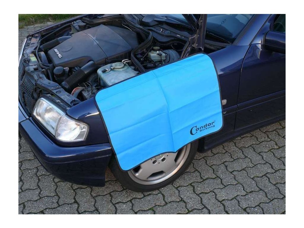 Ochranný kryt blatníka 79x59 cm v modrej farbe určený na ochranu karosérie a laku pred poškodením pri servisných prácach.