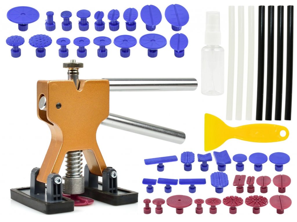 Karosárska súprava nástrojov slúžiaca na opravu preliačin metódou PDR. Náradie si ľahko poradí s jamkami po krupobití, parkovaní a s iným poškodením. Výhodou použitia tohto náradia je, že nemusíte demontovať časti karosérie, tak ušetríte čas a peniaze.