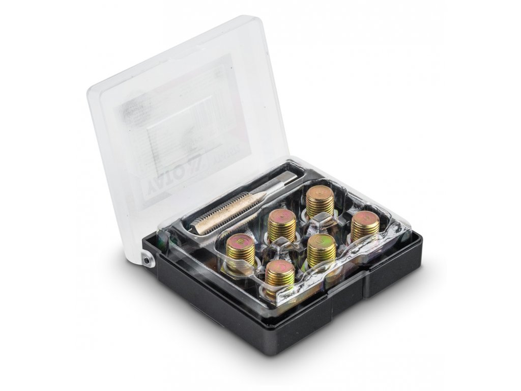 Sada na jednoduchú opravu závitov vypúšťacích skrutiek olejovej vane, prevodovky a pod. Pasuje na väčšinu bežných závitov osobných a ľahkých nákladných automobilov. Súprava je určená pre autodielne, opravovne a služby. Celá sada je umiestnená v pevnom praktickom kufríku, ktorý uľahčuje prepravu a skladovanie.