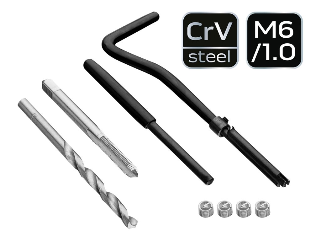 Súprava na opravu závitov M6 kompletná s: sada na opravu závitov, vrták a závitník, CrV