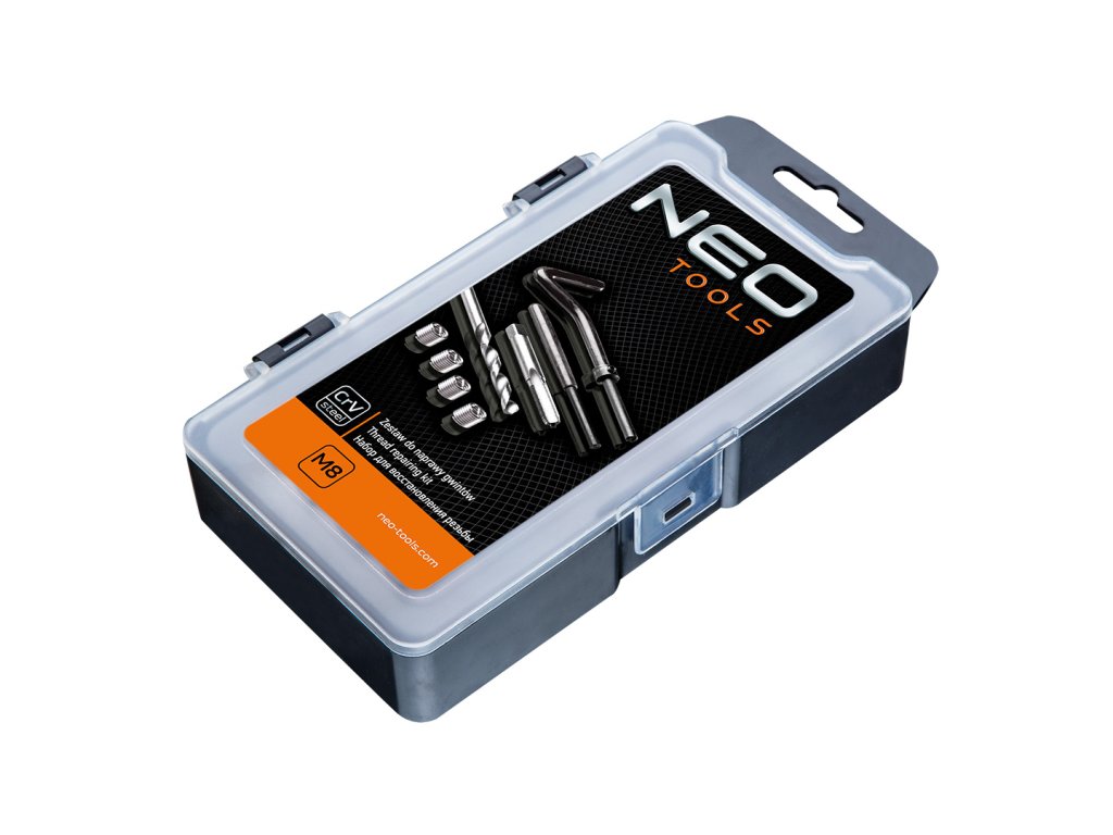 Sada na opravu závitov M8 NEO (ref. 11-902) obsahuje príslušenstvo a opravné prostriedky na opravu závitov M8 z vysokokvalitnej chróm-vanádiovej ocele. Vrátane závitorezu, vrtáka a 4 reparátov. Užitočné v každej dielni. Značka NEO spĺňa očakávania profesionálov.