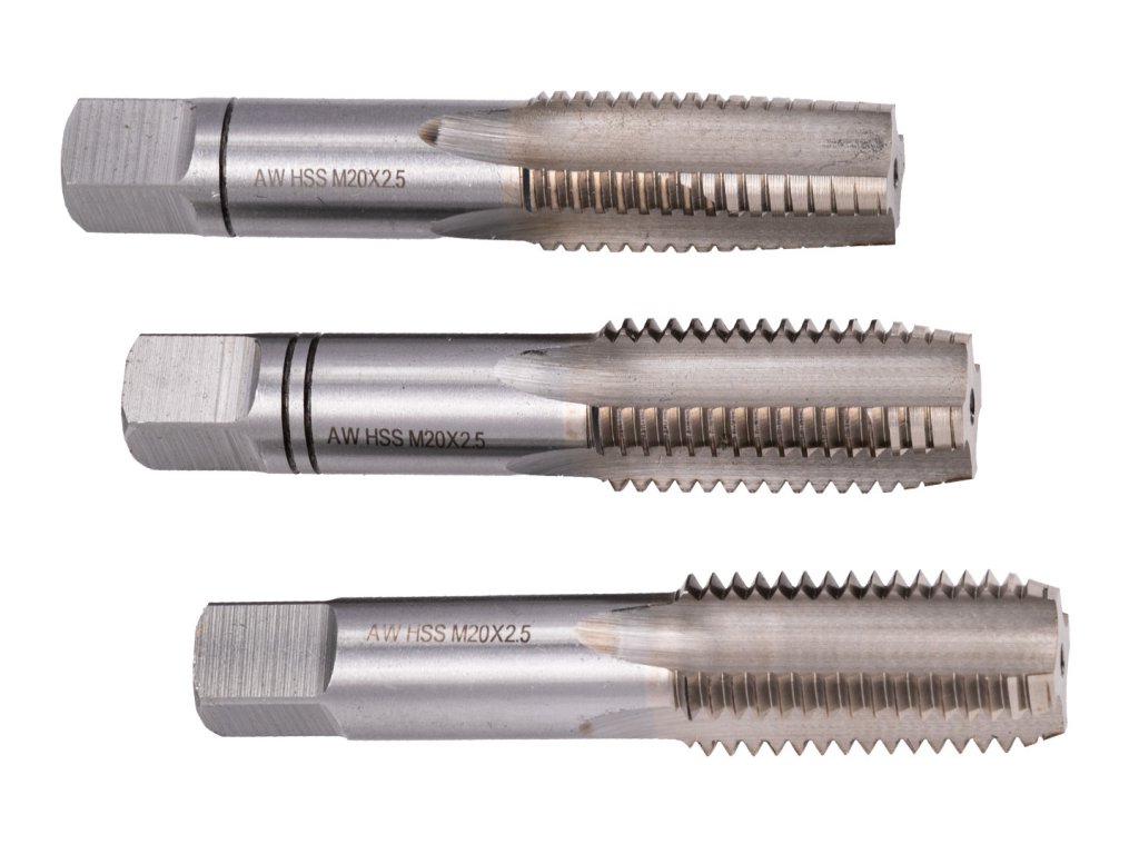 Sada 3ks závitníkov M20x2,50mm, vyrobených z rýchloreznej ocele HSS M2. Pri rezaní nových závitov, ale aj pri oprave poškodených závitov.