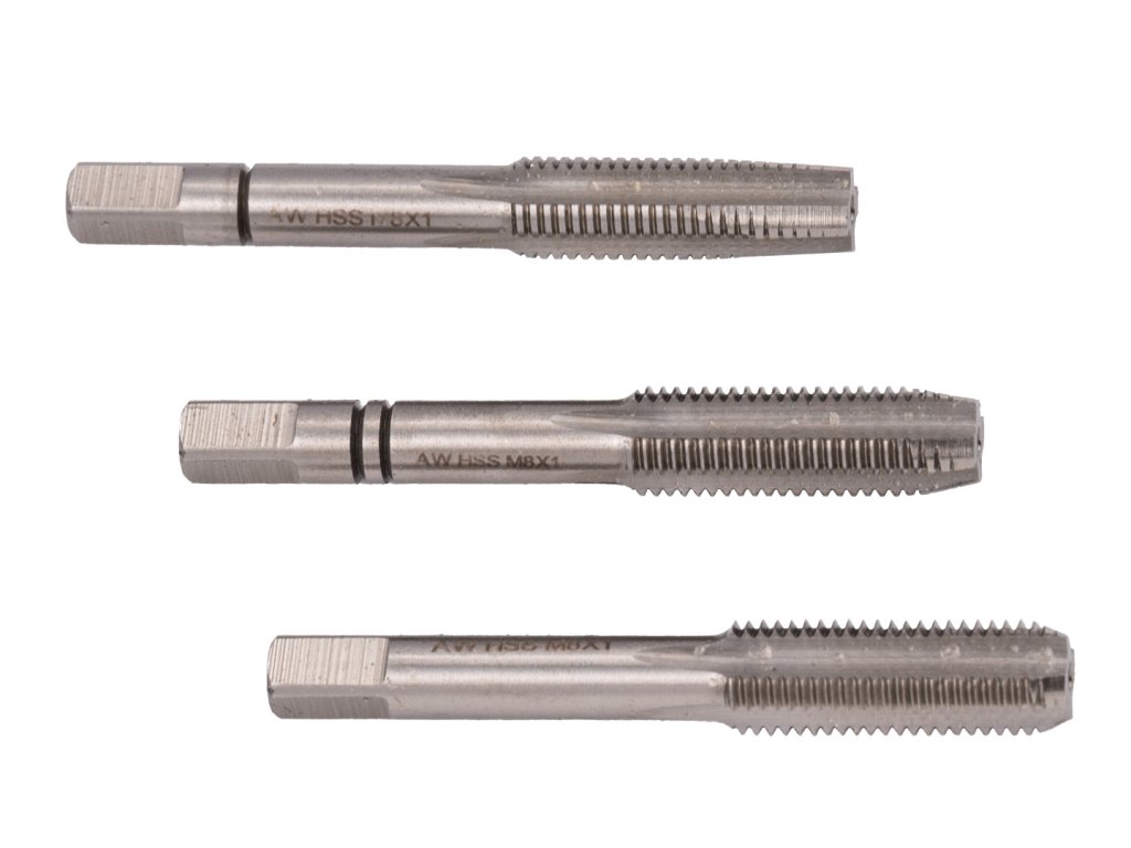 Sada 3ks závitníkov M8x1,00mm, vyrobených z rýchloreznej ocele HSS M2. Pri rezaní nových závitov, ale aj pri oprave poškodených závitov.