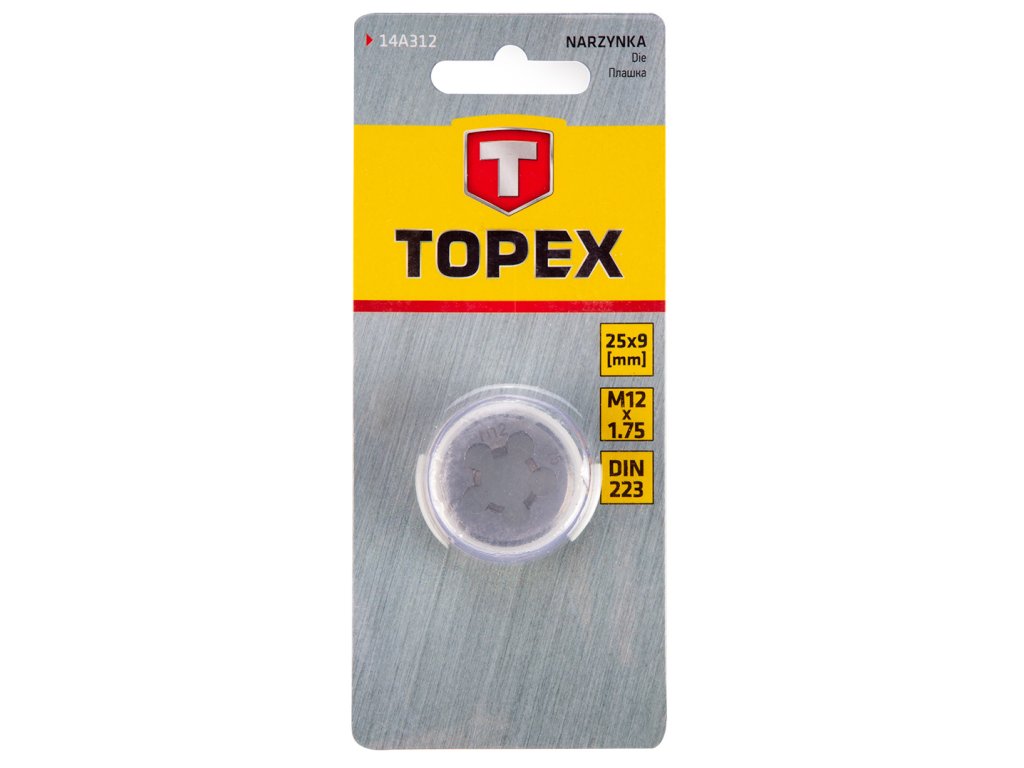 TOPEX chaser (ref. 14A312) vo veľkosti M12 je viacdrážkový nástroj na rezanie vonkajších závitov. Vyrobené z vysoko kvalitnej volfrámovej ocele. Spoľahlivosť výrobku zaručuje súlad s normou DIN 233. Značka TOPEX je určená pre domácich majstrov.