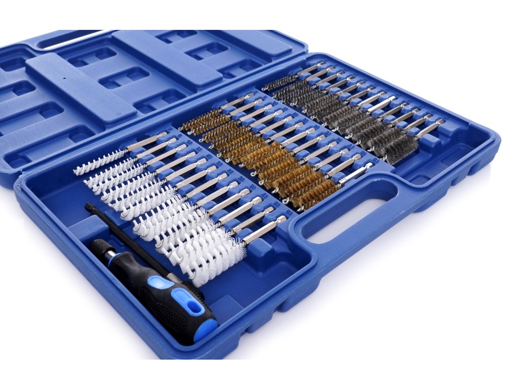 Kefy na vstrekovače, zapaľovacie sviečky a žeravé sviečky. Súprava obsahuje predĺženie, držadlo a 38 čistiacich kefiek rôznej tvrdosti. Kefky sú vhodné aj na použitie v elektrických a pneumatických vŕtačkách. Súprava je mimoriadne užitočná na čistenie a odstraňovanie otrepaných hrán valcov, puzdier, rúrok, sviečkových sánok, vstrekovačov atď.