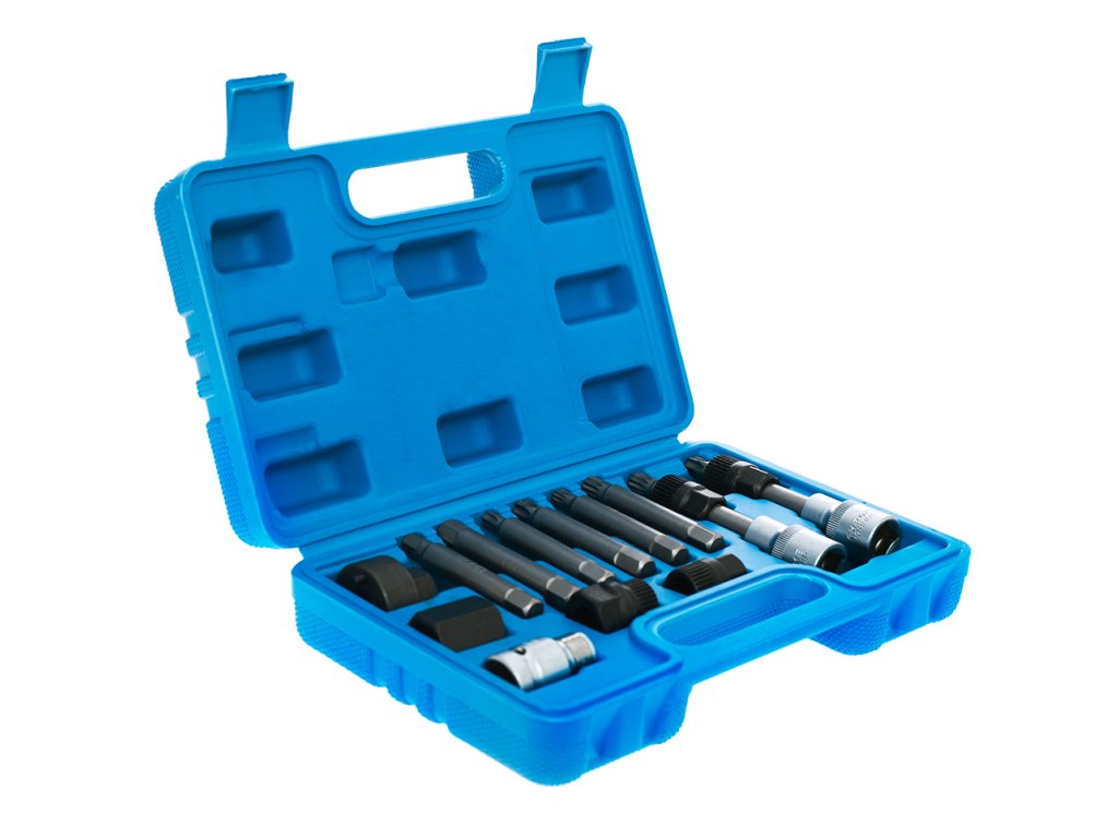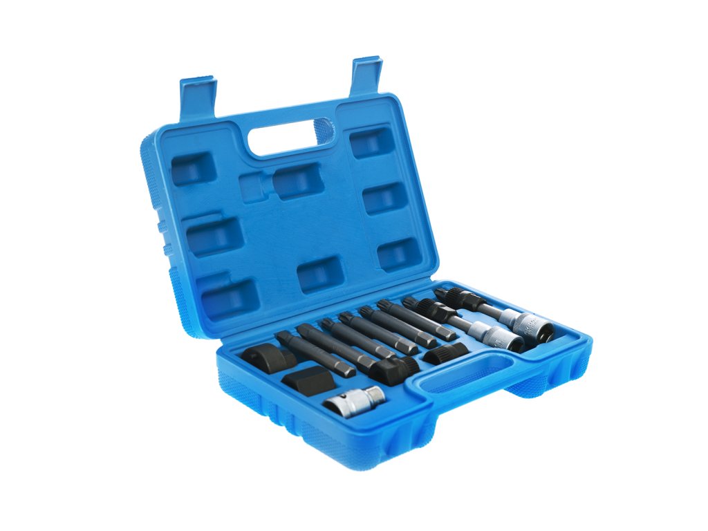 Bohatá sada kľúčov na montáž a demontáž alternátorov so spojkou typu Bosch, Magneti Marelli. Určené pre vozidlá značiek: Audi, BMW, Fiat, Ford, Mercedes, Opel, Porsche, Renault, Peugeot, Seat, Skoda, Volvo, VW a iné značky