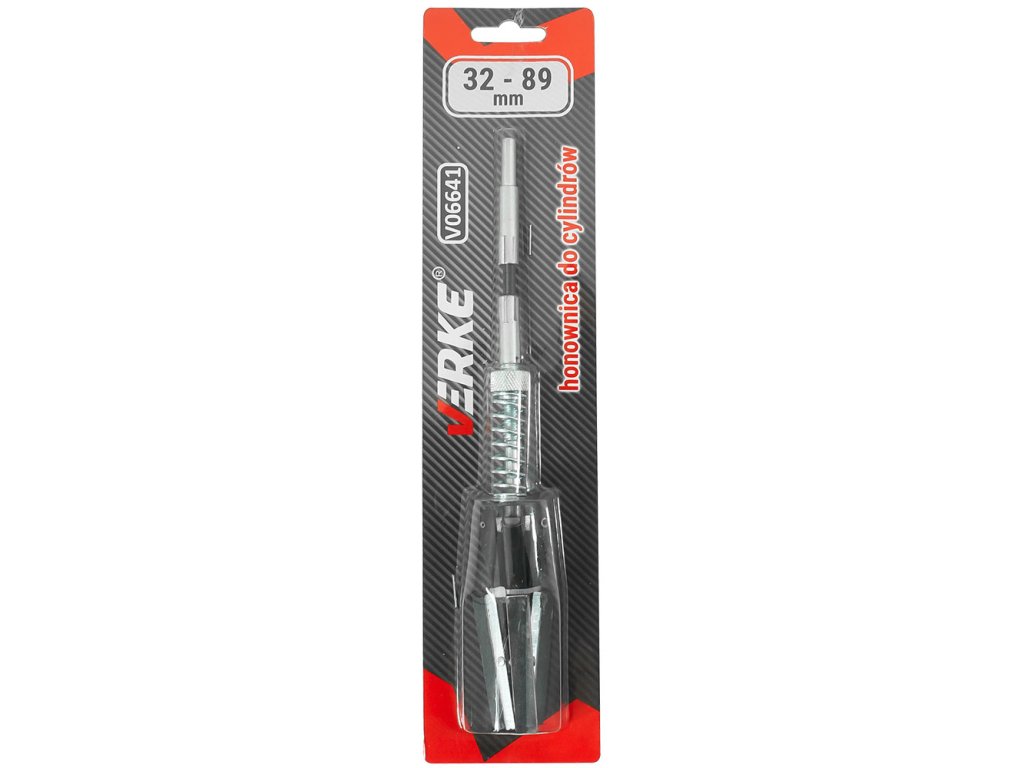 Trojramenný honovací prípravok na brúsenie valcov 32-89mm, zakončený troma brúsnymi kameňmi s dĺžkou 51mm. Nástroj na honovanie valcov má nastaviteľný tlak brusných kameňov. Prípravok na honovanie/brúsenie valcov sa hodí na akúkoľvek vŕtačku.