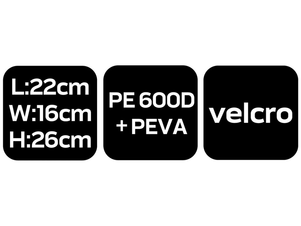 Materiál organizéra do auta: PE 600D + PEVA; rozmery: 220 x 160 x 260 mm; možno upevniť pomocou svorky; uzamykateľný pomocou suchého zipsu.