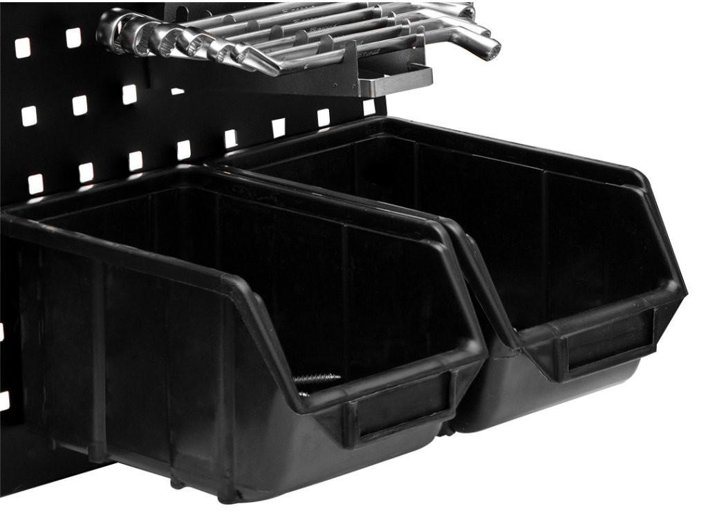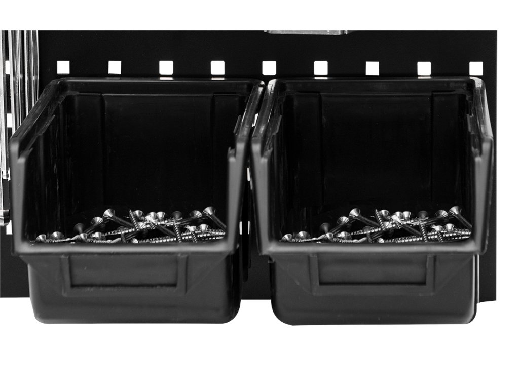 Úložná nádoba TOPEX (ref. 79R182) s rozmermi 17 x 11,5 x 7,5 cm. Vyrobené z pevného plastu, ktorý zaručuje odolnosť. Nádobu možno namontovať na stenu alebo ju uložiť na seba. Uľahčuje organizáciu priestoru v garáži alebo v suteréne a vytvára systém na uskladnenie drobného náradia a materiálu, ako sú skrutky, skrutky, nity. Značka TOPEX je určená pre domácich majstrov.