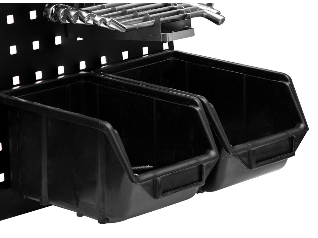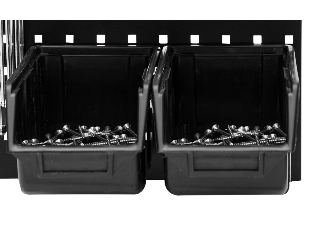 Úložná nádoba TOPEX (ref. 79R183) s rozmermi 25 x 16 x 13 cm. Vyrobené z pevného plastu, ktorý zaručuje odolnosť. Kontajner možno namontovať na stenu alebo stohovať. Uľahčuje organizáciu priestoru v garáži alebo v suteréne a vytvára systém na uskladnenie drobného náradia a materiálu, ako sú skrutky, skrutky, nity. Značka TOPEX je určená pre domácich majstrov.