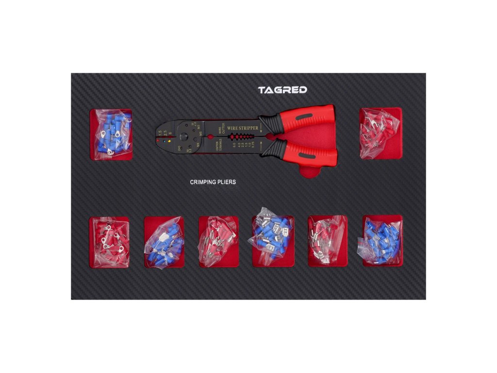 Vložka do dielenského vozíka PERFORMANCE, Kliešte na lisovanie a konektory 161 dielov TA196310