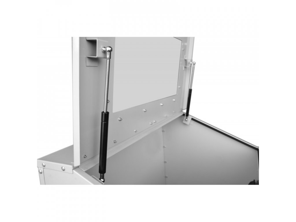 Kabínová pieskovačka s objemom 220l s horným otváraním pomocou teleskopických tlmičov. Horné otváranie výrazne zlepšuje prácu s ťažkými detailmi. Pieskovačka je štandardne vybavená sadou trysiek, pištoľou a ochrannými fóliami na sklo.Pieskovačka napojená na kompresor je ideálnym riešením pre rýchle, dôkladné a efektívne čistenie rôznych druhov povrchov, napríklad odstraňovanie hrdze, farby, usadenín z kovových povrchov, ako sú: automobilové diely, motory, kryty, kolesá, ráfiky, závesy atď.