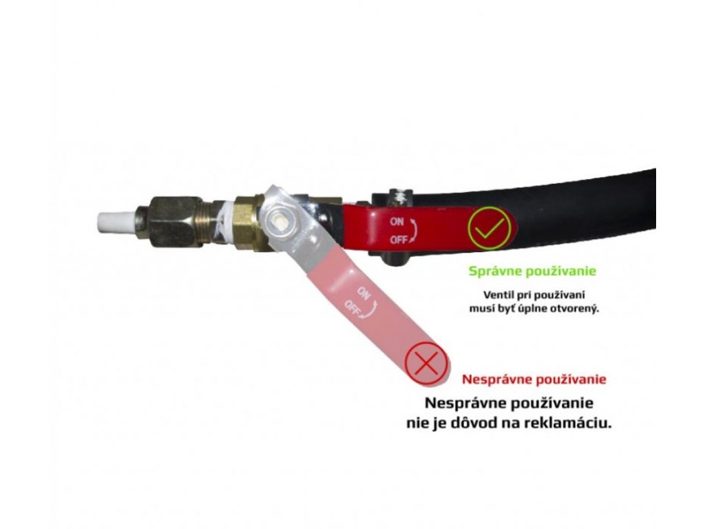 Dôležité! Počas práce musí byť ventil vždy otvorený úplne. Nikdy neotvárajte ventil len z časti, pretože dôjde k jeho poškodeniu, ktoré nemôže byť predmetom reklamácie.