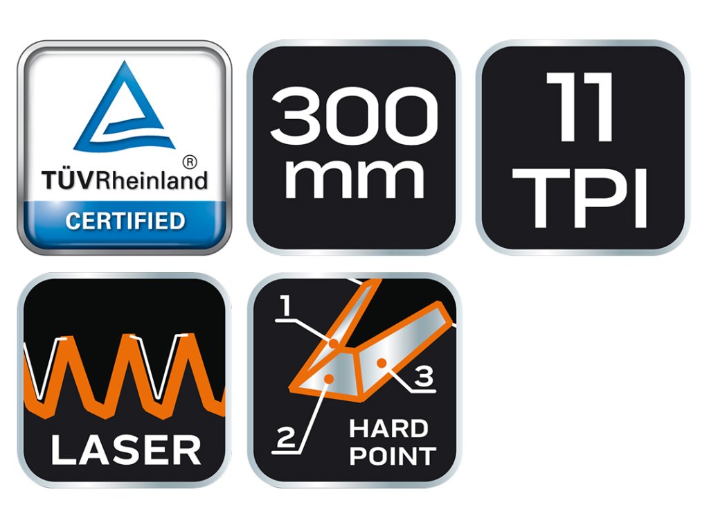 Píla na diery 300 mm, 11 TPI, rukoväť z dvoch materiálov, trojstranne naostrené a kalené zuby