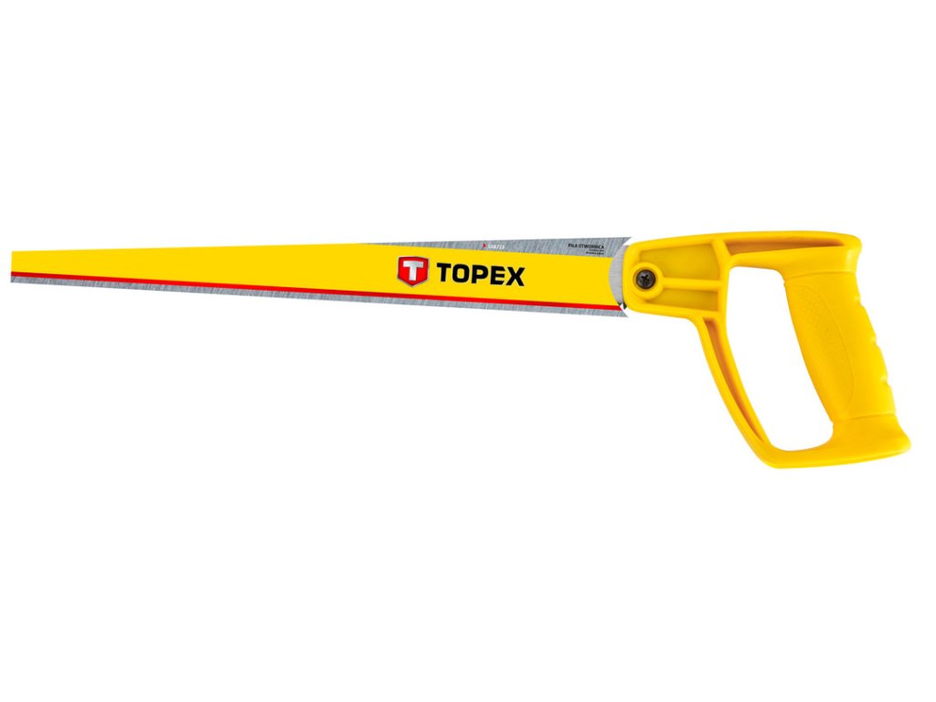 TOPEX dierovacia píla (ref. 10A723) s dĺžkou čepele 300 mm. Určené na rezanie otvorov alebo iných komplikovaných tvarov. Čepeľ je vyrobená z kvalitnej kalenej ocele. Výkonné ozubenie s 9 zubami na palec zlepšuje prácu s výrobkom. Ergonomická rukoväť z plastu umožňuje presné vedenie píly. Špeciálna uzavretá konštrukcia rukoväte poskytuje vysokú úroveň pohodlia a bezpečnosti pri práci. Značka TOPEX je určená pre domácich majstrov.