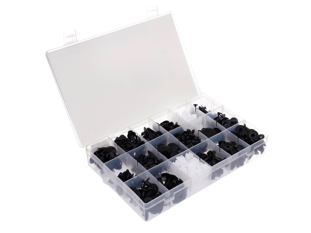 Sada plastových spôn pre automobily značky NISSAN. Balenie obsahuje 18 typov spôn, spolu 408 spôn. Celok je zabalený v krabici s praktickými priehradkami.