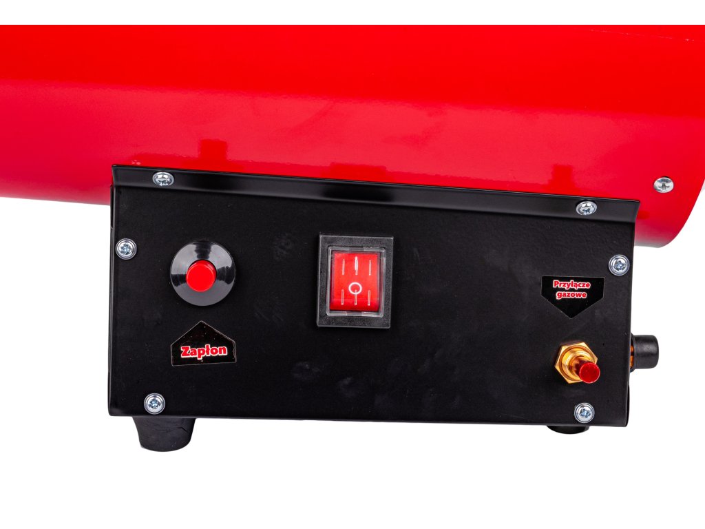 Kryt ohrievača je vyrobený z kovu, zatiaľ čo vykurovacie teleso je vyrobené z nehrdzavejúcej ocele. Prietok vzduchu 500 m/h zabezpečuje rýchle vyhriate veľkých miestností. Zariadenie je poháňané propán-butánovým plynom a produkuje čistý a teplý vzduch. Spaľovací proces prebieha v otvorenej komore, vzduch nasávaný ventilátorom sa ohrieva a následne vyfukuje von z ohrievača. Nevyžaduje si komín ani iný odvod spáleného vzduchu, stačí zabezpečiť prívod vzduchu pre správne spaľovanie. Ohrievač je vybavený 1,5 m hadicou a redukciou pre komplexnú prevádzku. Ochrana proti prehriatu minimalizuje riziko poškodenia zariadenia. Plynový ohrievač vyniká dlhou životnosťou.