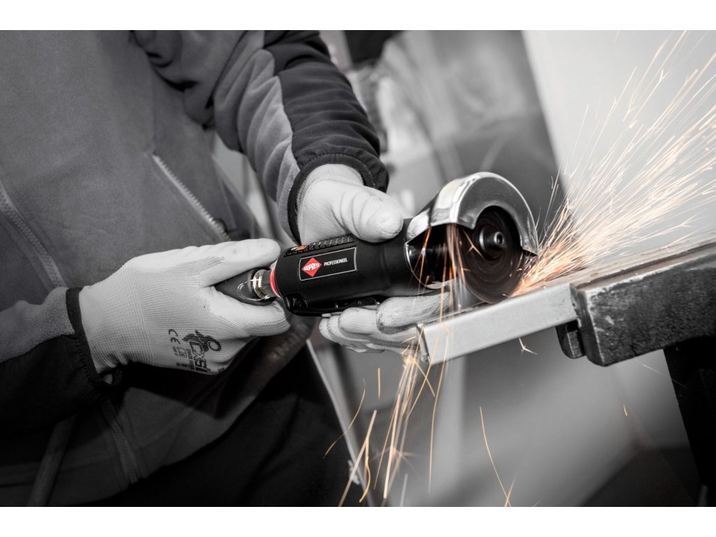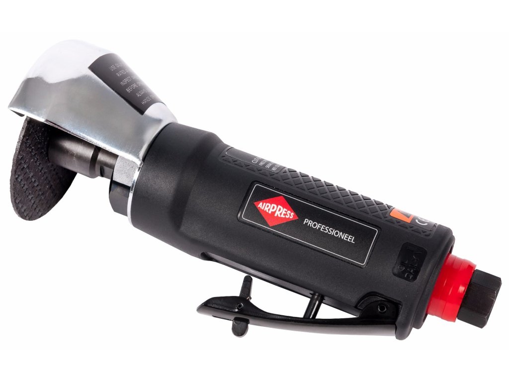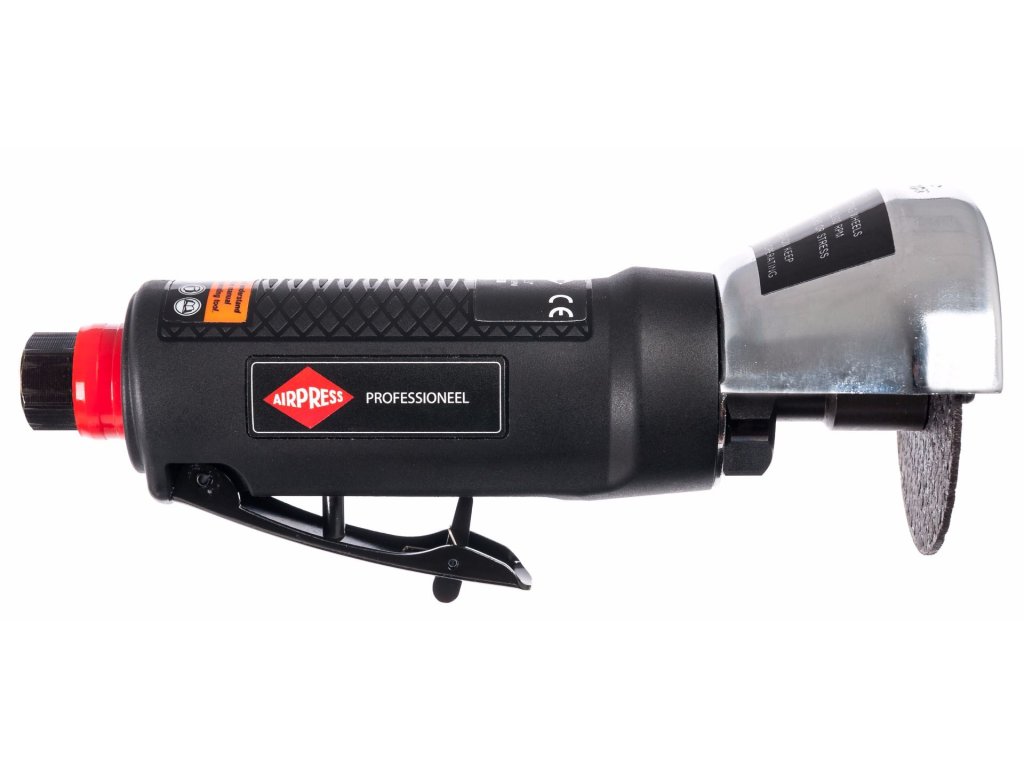 Brúska 75mm 45433 Airpress je veľmi kompaktné zariadenie na vyrezávanie otvorov aj na ťažko prístupných miestach. Vyvedený nôž mimo obrys zariadenia v čelnej polohe umožňuje presné vyrezávanie aj malých prvkov. Štandardné korundové kotúče 75mm umožňujú jednoduché spracovanie kovových súčiastok aj na ťažko prístupných miestach. Dosahované otáčky na úrovni 20 000 ot./min pri výkone 640 wattov uľahčujú zapustenie kotúča do materiálu. Efektívny kryt kotúča s uhlom 180 stupňov chráni ostatné prvky pred poškodením iskrami a trieskami počas vyrezávania. Je vybavený tlmičom hluku, ktorý znižuje hlučnosť práce na 85 dB(A). Vyrezávač 45433 Airpress je obzvlášť obľúbený v karosárskych, remeselných alebo hydraulických prácach na vyrezávanie malých prvkov s obmedzeným prístupom. Vhodné na plechy, rúrky, oceľ, skrutky, plasty a lamináty.