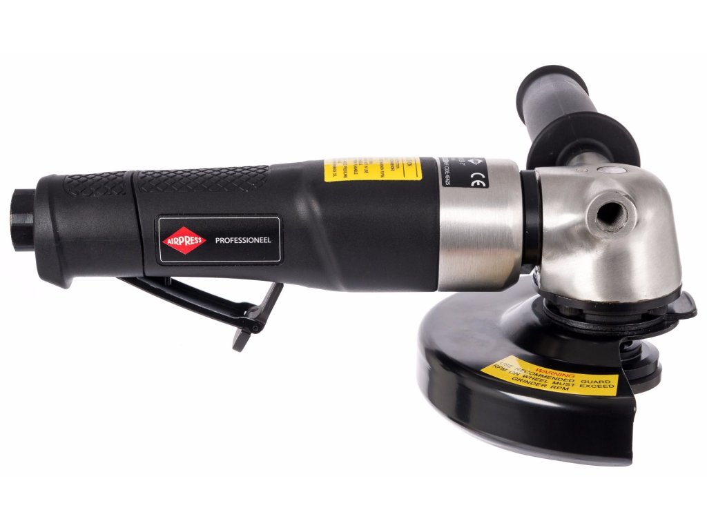 Uhlová brúska Airpress 45425 je univerzálne zariadenie na kotúče do 125mm s univerzálnym upevnením M14. Výkon tejto brúsky je 850 wattov. Viacpolohová bočná rukoväť, nastaviteľné umiestnenie ochrany a pohodlný spúšť na rukoväti umožňujú bezpečnú a komfortnú prácu. Otáčky na úrovni 12 000 ot./min umožňujú rezanie a brúsenie ocele, betónu a iných stavebných materiálov s použitím kotúčov a diamantových hláv. Veľmi dobre sa osvedčuje nielen v poľnohospodárstve, mechanických a servisných dielňach, ale aj pri stavebných prácach.