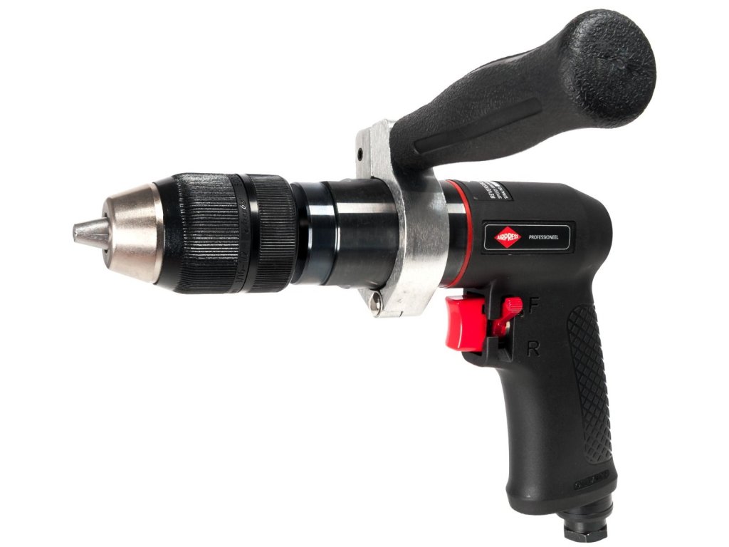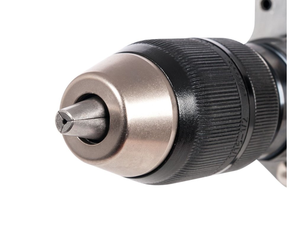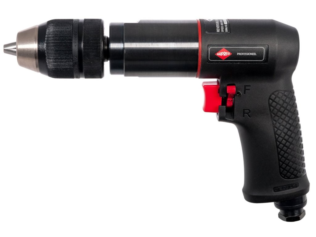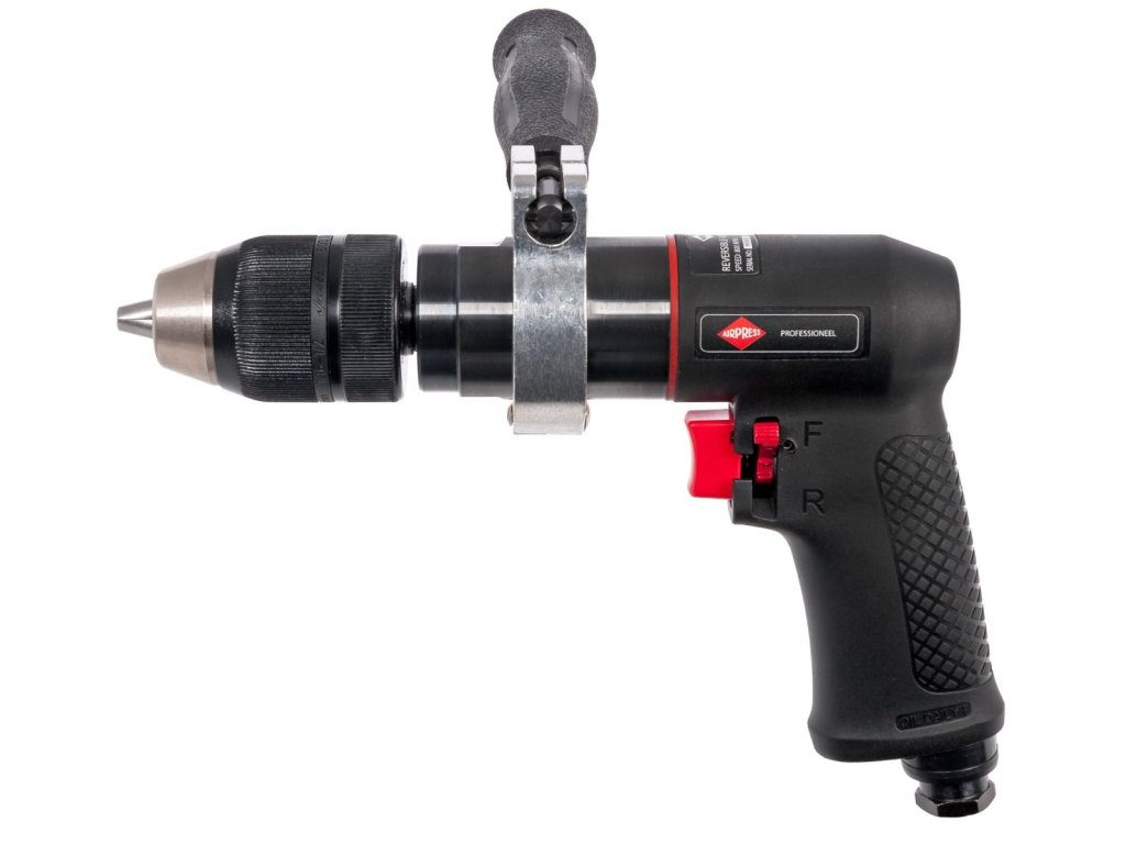 Vŕtačka Airpress model 45478 je určená na ťažšie práce, aj s vrtákmi väčšieho priemeru. Samozatvárací kovový skľučovadlo 13 mm zaručuje veľmi dobré uchopenie vrtáka a dlhú životnosť. Vŕtačka má dvojrýchlostný mechanizmus v spúšti, ktorý umožňuje regulovať otáčky pri vŕtaní v rôznych materiáloch. Prepočítaná moc na úrovni 600 wattov a inovatívny systém prevodov umožňujú dosahovať mimoriadne parametre z tak kompaktného zariadenia. Maximálne otáčky vretena sú iba 800 ot./min, vďaka čomu dosiahneme vyšší krútiaci moment a väčšiu bezpečnosť pred prehriatím vrtáka. Je vybavená dodatočným postranným držadlom, nastaviteľným v systéme 360 stupňov, protišmykovou povrchovou úpravou na rukoväti, prepínačom otáčok L/P a reguláciou otáčok v spúšti. Osobitne odporúčaná v závodoch na spracovanie kovov, v produkcii dverí a okien, v mechanických dielňach, poľnohospodárstve, ako aj v montážnych závodoch.