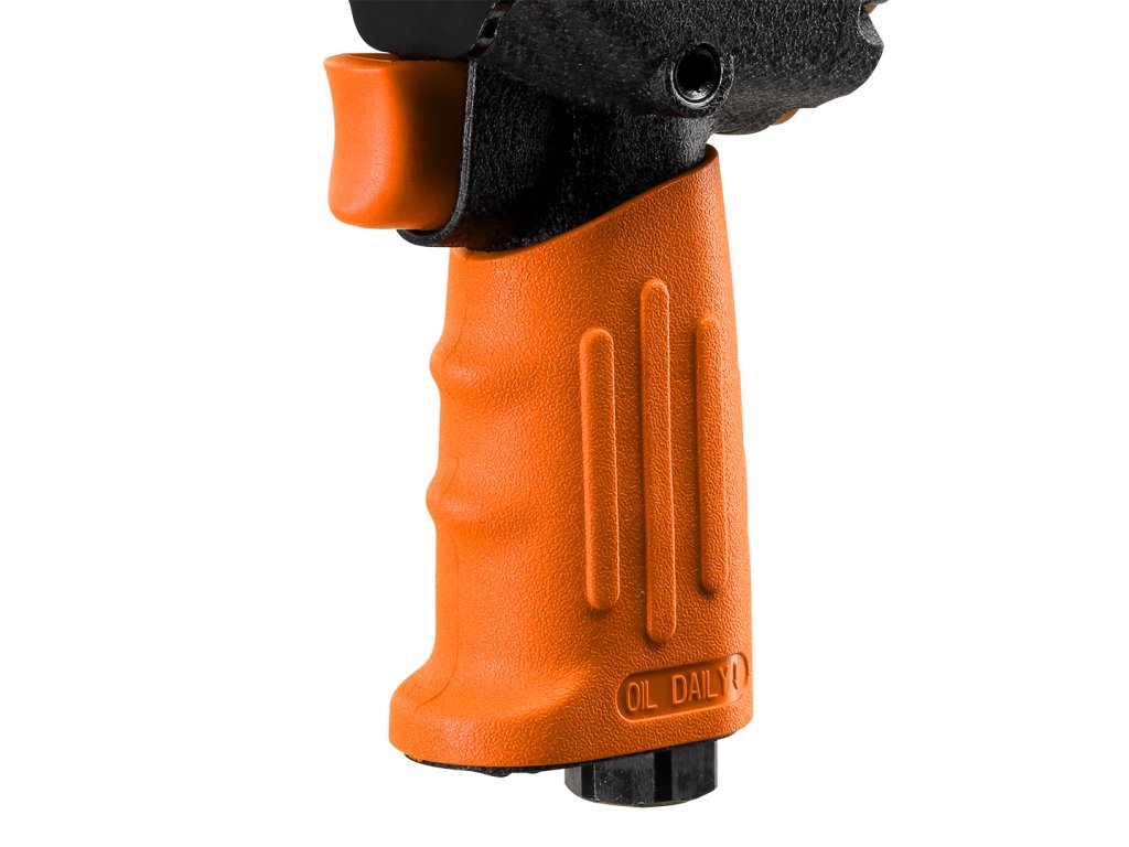 Pneumatický rázový uťahovák, 1/2“ NEO, profesionálny nárazový kľúč vyrobený z kompozitu je určený pre prácu s veľkými zaťaženiami. Nárazový systém s dvojspojkovým kladivom Twin Hammer, umožňuje dosiahnuť maximálny krútiaci moment v širokom rozsahu otáčok. Má reguláciu otáčok vľavo/vpravo a nastavenie krútiaceho momentu v rozsahu 950 -1020Nm Pohodlie pri práci zvyšuje nemrznúca rukoväť. Vďaka kompaktnému dizajnu a malým rozmerom je kľúč je pohodlný pri práci aj v ťažko prístupných miestach. Súlad s európskymi bezpečnostnými normami dokladá certifikát CE. Značka NEO spĺňa očakávania odborníkov.