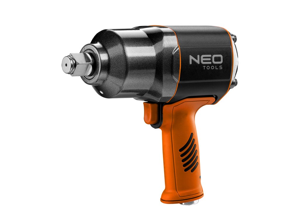 Pneumatický rázový uťahovák, 3/4" NEO (ref. č. 12-024). Silný nárazový kľúč určený pre prácu s veľkými zaťaženiami. Nárazový systém s tŕňovou spojkou Twin Hammers poskytuje vysokú rázovú pevnosť do 2000Nm. Ideálne napr. pre autodielne. Má reguláciu otáčok vľavo/vpravo a nemrznúcu rukoväť. Súlad s európskymi bezpečnostnými normami dokladá certifikát CE. Značka NEO spĺňa očakávania odborníkov.