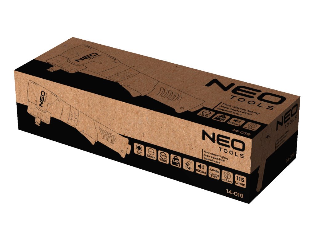 Uhlový rázový uťahovák, 1/2", 500 Nm 14-019 od spoločnosti NEO je nástroj, ktorý sa vyznačuje krútiacim momentom 500 Nm. Pracuje pri maximálnom pracovnom tlaku 6,3 bar s priemernou spotrebou vzduchu 113 l/min. Kľúč dosahuje rýchlosť 7500 otáčok za minútu. Jeho nízka hmotnosť 1,17 kg a praktický tvar prispievajú k jeho pohodliu. Odporúča sa na dielenské úlohy. Kvalita výrobku značky NEO je potvrdená certifikátom CE.